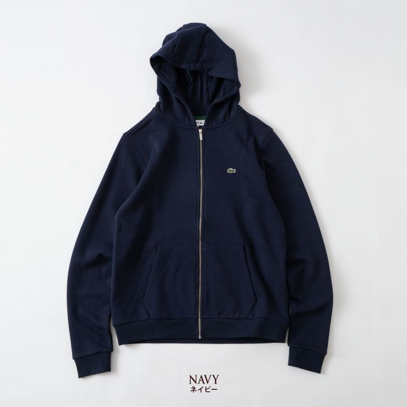 ラコステから、シンプルなデザインのジップフーディーです。フリース素材+袖のリブのおかげで軽くて暖かく、動きやすい仕上がりになっています。ブランドの象徴であるワニロゴが左胸のワンポイントとして配置されています。