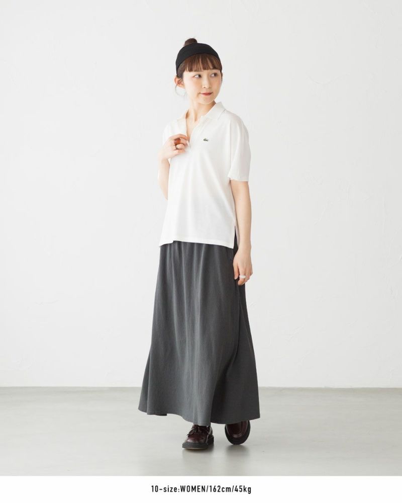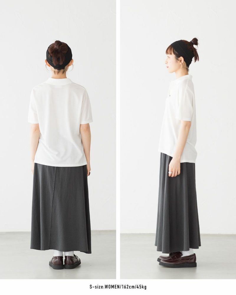 スカートやスラックスでとことんきれいめに合わせるのはもちろん、デニムなどのカジュアルなボトムスとも相性のいい、着回し力バツグンのサマーポロです。
