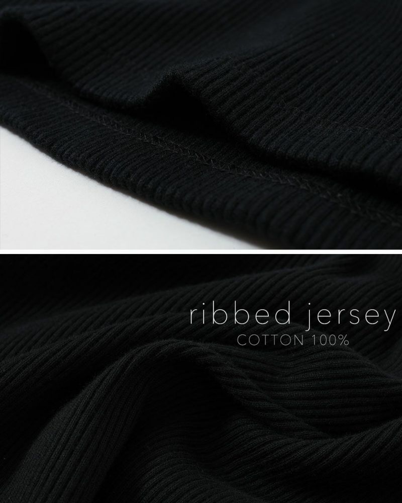 コットン100%のリブジャージ素材を使用。伸縮性のあるリブ編みならではのフィット感があり、動きに合わせてしなやかに馴染みます。