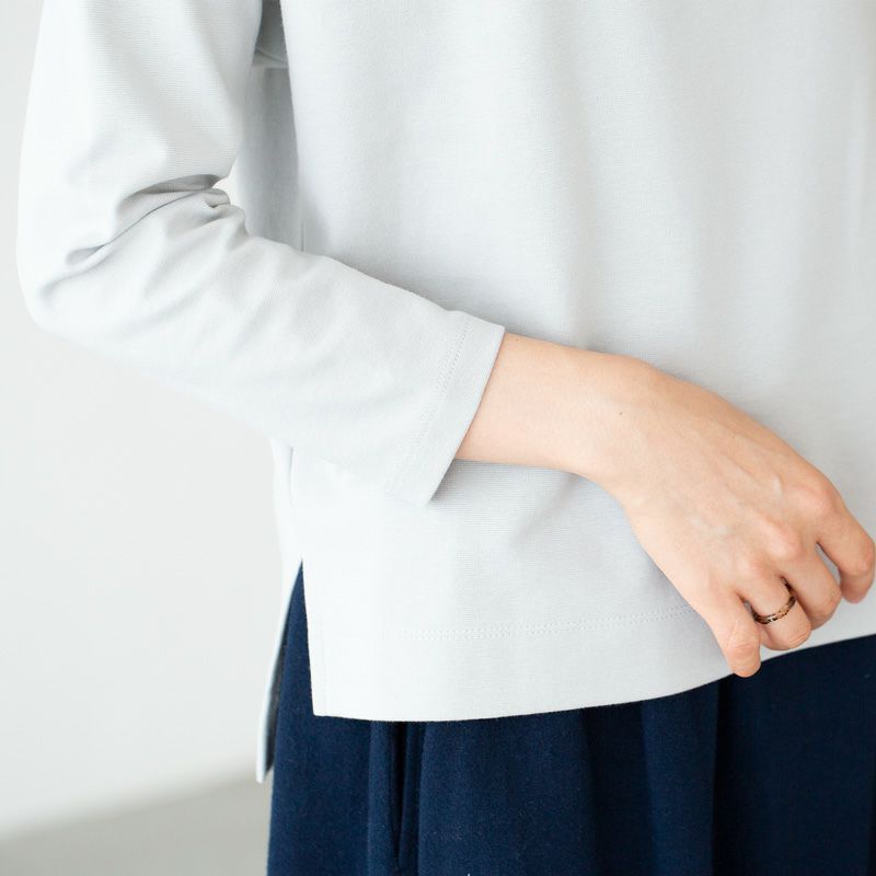 適度な厚みとハリ感のあるミラノリブ生地を使ったプルオーバーシャツ。ボトルネックの形が綺麗にでるので首元すっきり。体のラインを拾わないので、気になる体型を自然にカバーしてくれるのも嬉しいポイントです◎