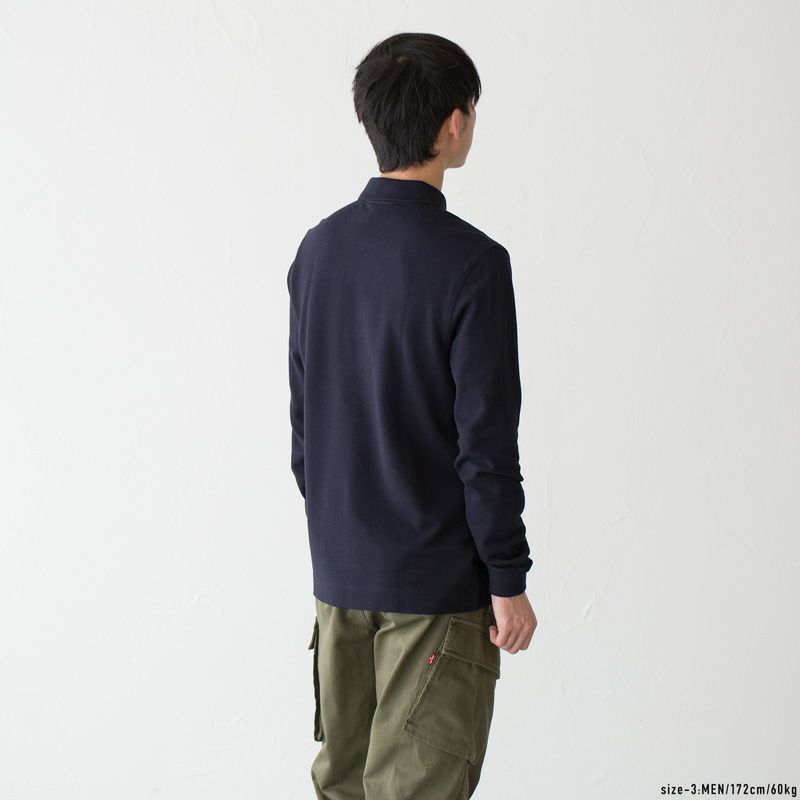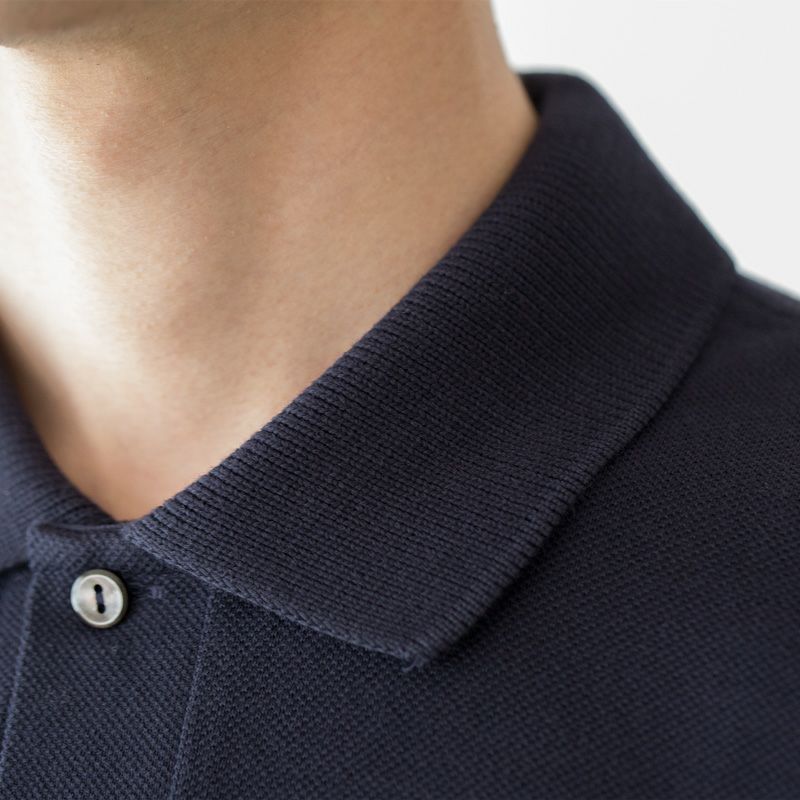 厚手のオーガニックコットン鹿の子で仕立てた定番顔長袖ポロ。
