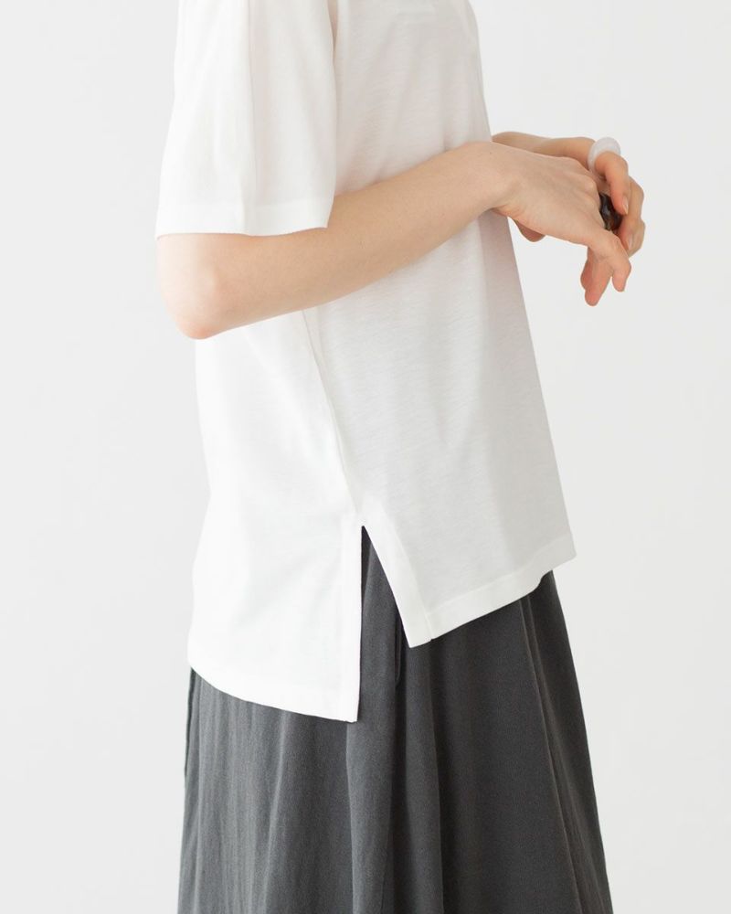 スカートやスラックスでとことんきれいめに合わせるのはもちろん、デニムなどのカジュアルなボトムスとも相性のいい、着回し力バツグンのサマーポロです。