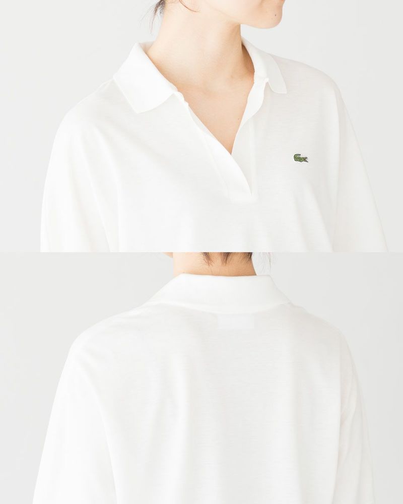 カジュアルすぎるポロシャツが苦手な方も着やすい、ボタンレスのスキッパーネックやブラウスライクなデザインがポイントです。