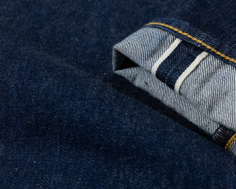 日本最高峰のデニムを生産するカイハラ社製の旧式シャットル機で織られたデニムを採用。横幅が約27~29インチと細幅でセルビッジといわれる両端にほつれ止め施された生地です。