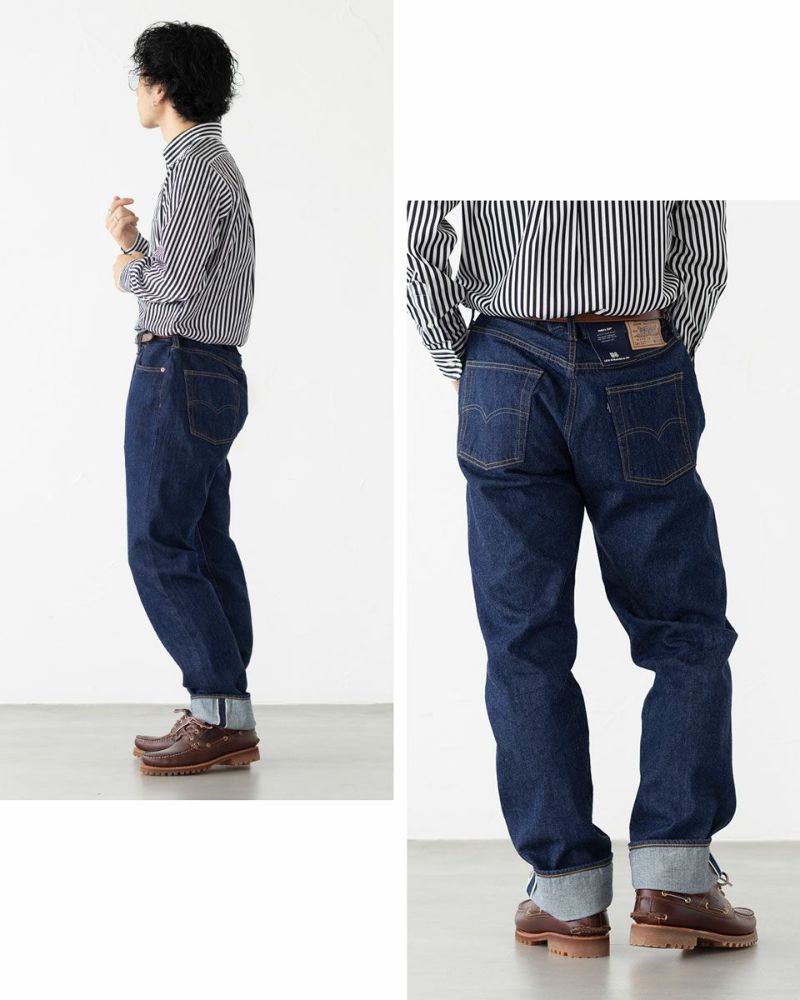 現行の501よりゆったりとしたワタリ、裾に向かって細くなるテーパードシルエットが特徴です。