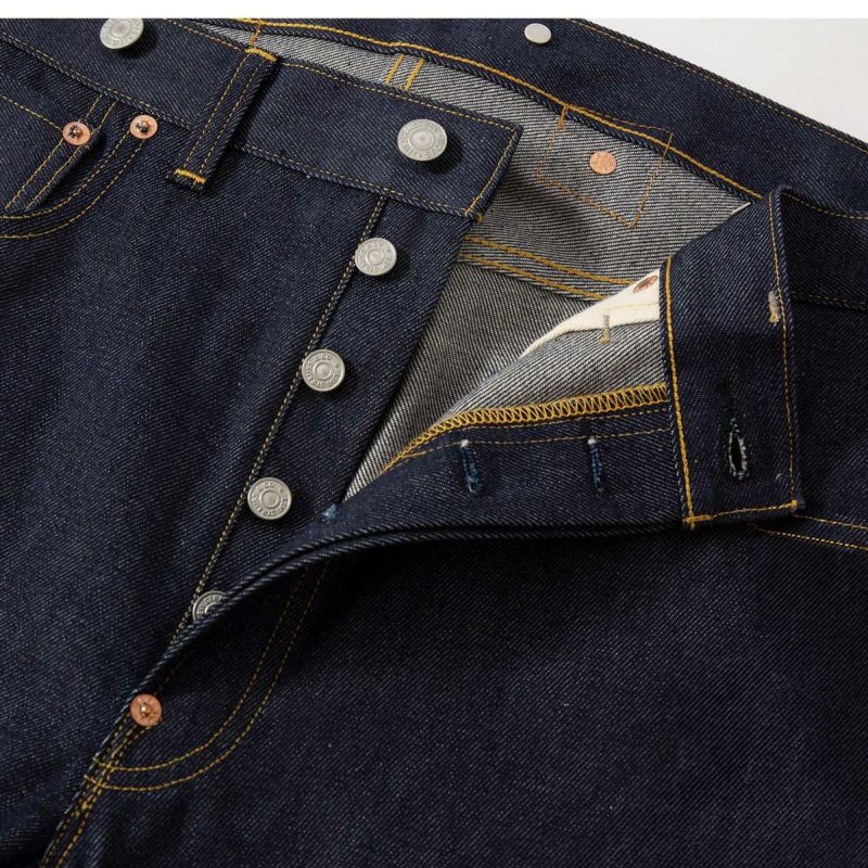旧式シャットル機で織られたデニムは横幅が約27〜29インチ、両端が縫製してあるセルビッジ仕様であるのが特徴。501は生地を端まで目一杯使ってつくられるので、外側の縫いわせやウォッチポケットの裏面にセルビッジがみられ「耳」といわれるディテールが生まれます。