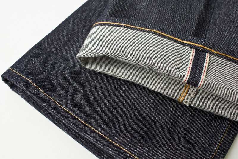 旧式シャットル機で織られたデニムは横幅が約27〜29インチ、両端が赤い糸などで縫製(レッドセルビッジ)してあるのが特徴。