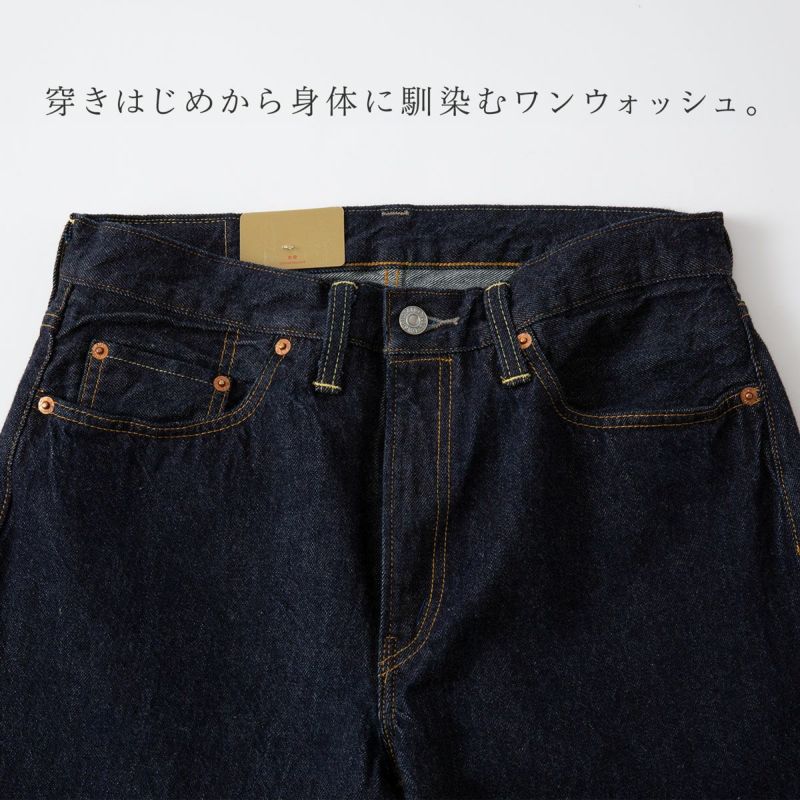 リンス加工を施した柔らかな風合いで縮みが少なく、穿きはじめからジャストサイズで穿けるワンウォッシュモデルです。