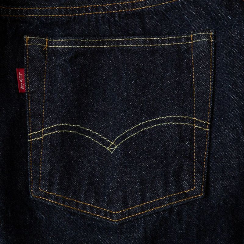 旧式シャットル機で織られたデニムは横幅が約27〜29インチ、両端が縫製してあるセルビッジ仕様であるのが特徴。501は生地を端まで目一杯使ってつくられるので、外側の縫いわせやウォッチポケットの裏面にセルビッジがみられ「耳」といわれるディテールが生まれます。