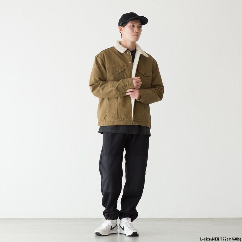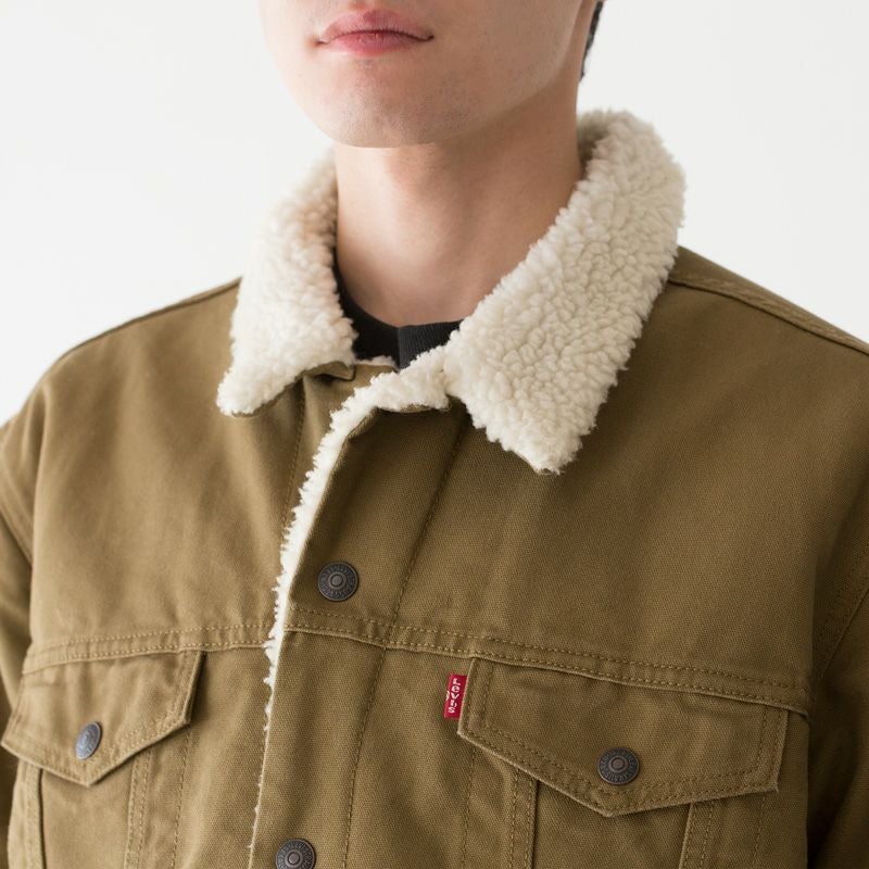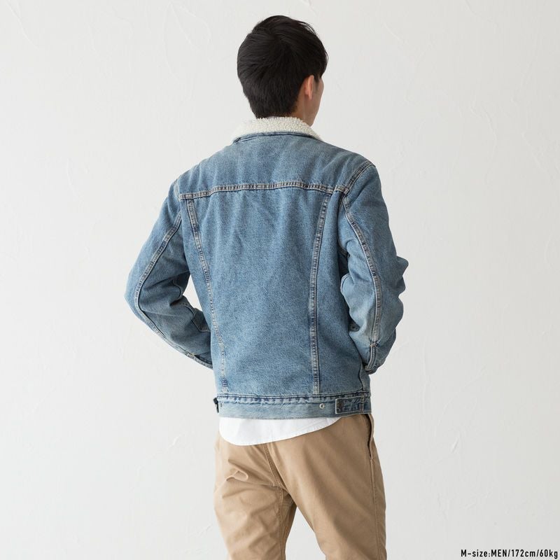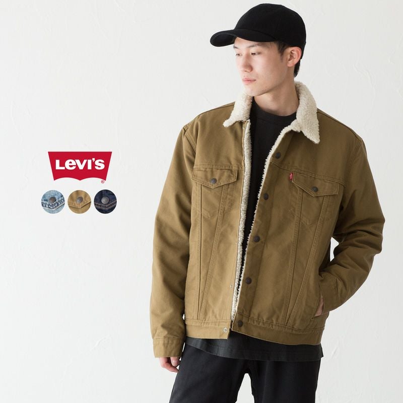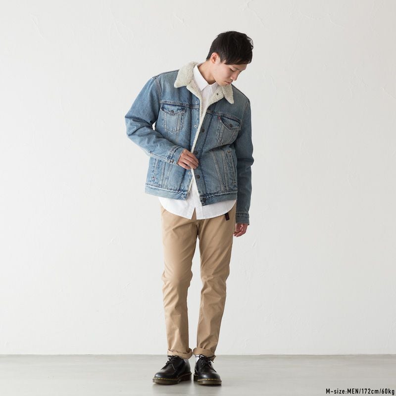 リーバイスの冬の定番、シェルパ・トラッカージャケット。 シェルパとは「ネパールの寒冷な地域に住む少数民族」に由来したネーミング。衿裏と身頃裏に保温性のあるボア、袖裏には中綿キルティングを使い、防寒性を高めたモデルです。