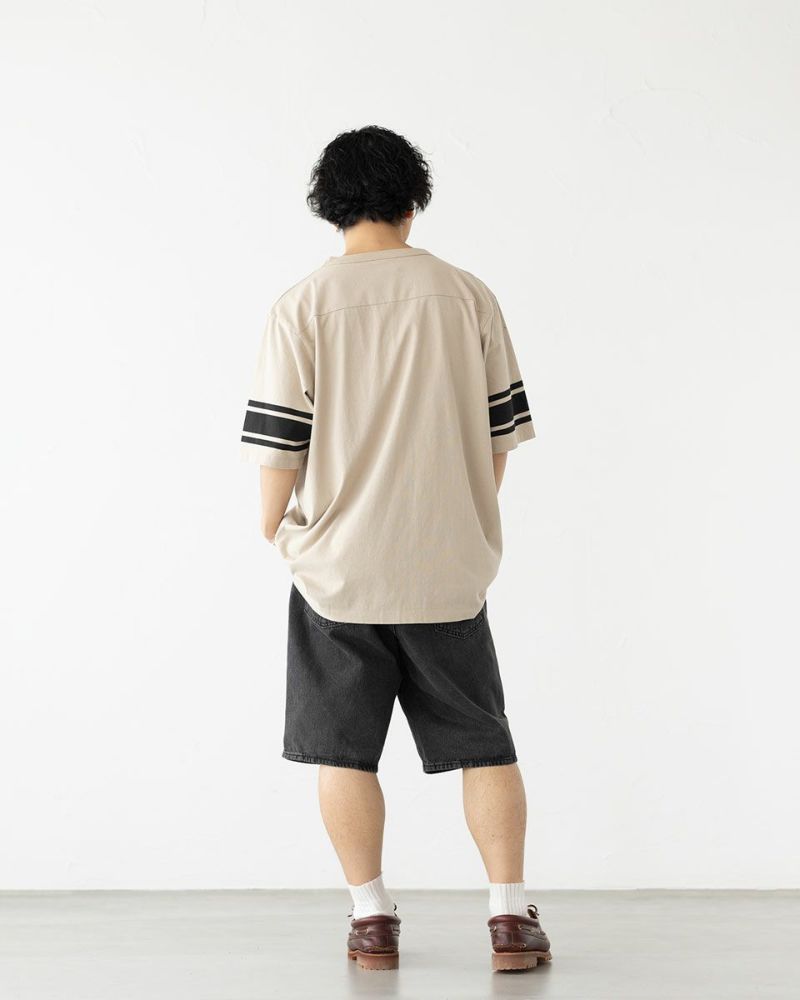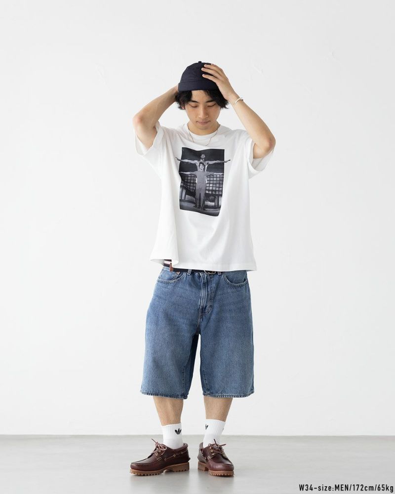 トレンドのバギーシルエットを採用した極太ショートパンツ。長めの膝下丈で90sライクなスタイルがつくれるアイテムです。