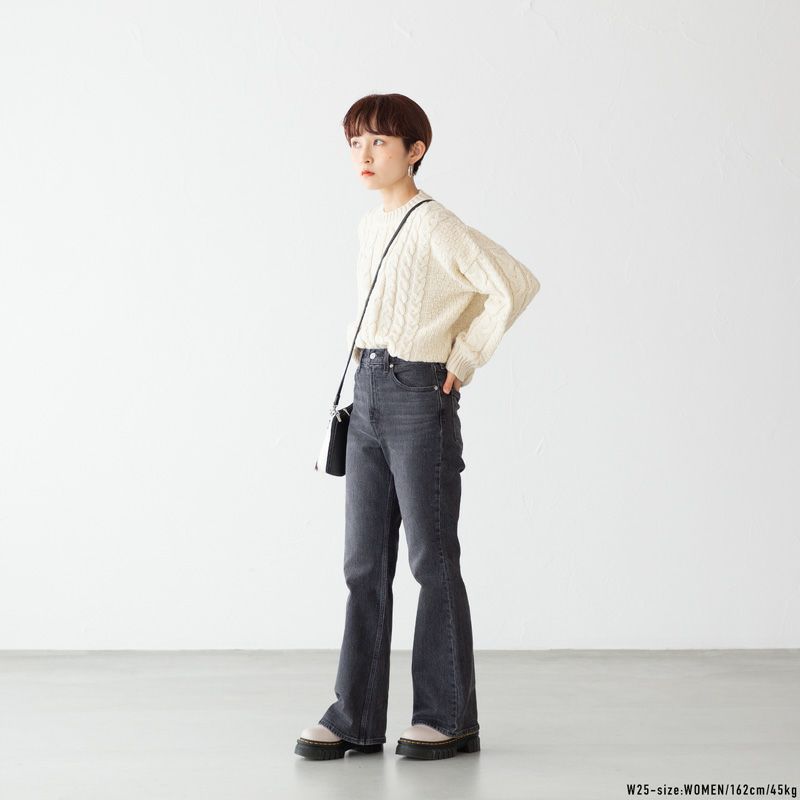 ブラックデニムが色落ちしたような、こなれたヴィンテージ加工が◎ストレッチが効いているので穿きやすく、適度なフィットで足の形をキレイに見せてくれます。