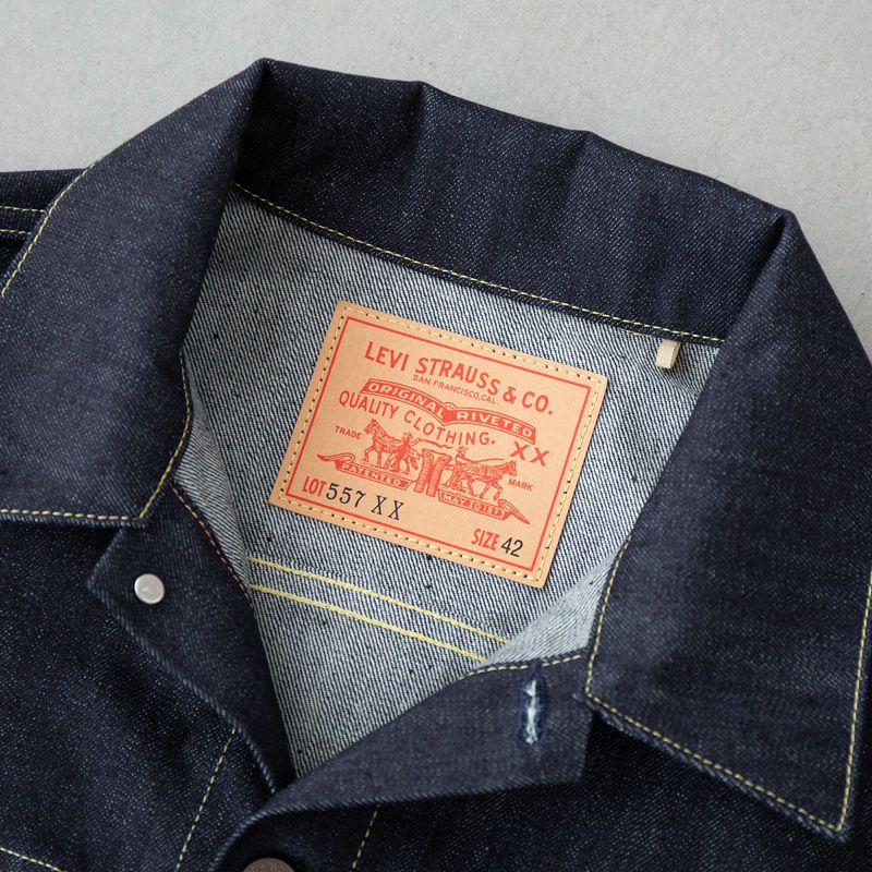 557XXは毛羽立ちの少ない、ヘビーオンスなプレシュリンクデニム(防縮加工デニム)を採用しています。