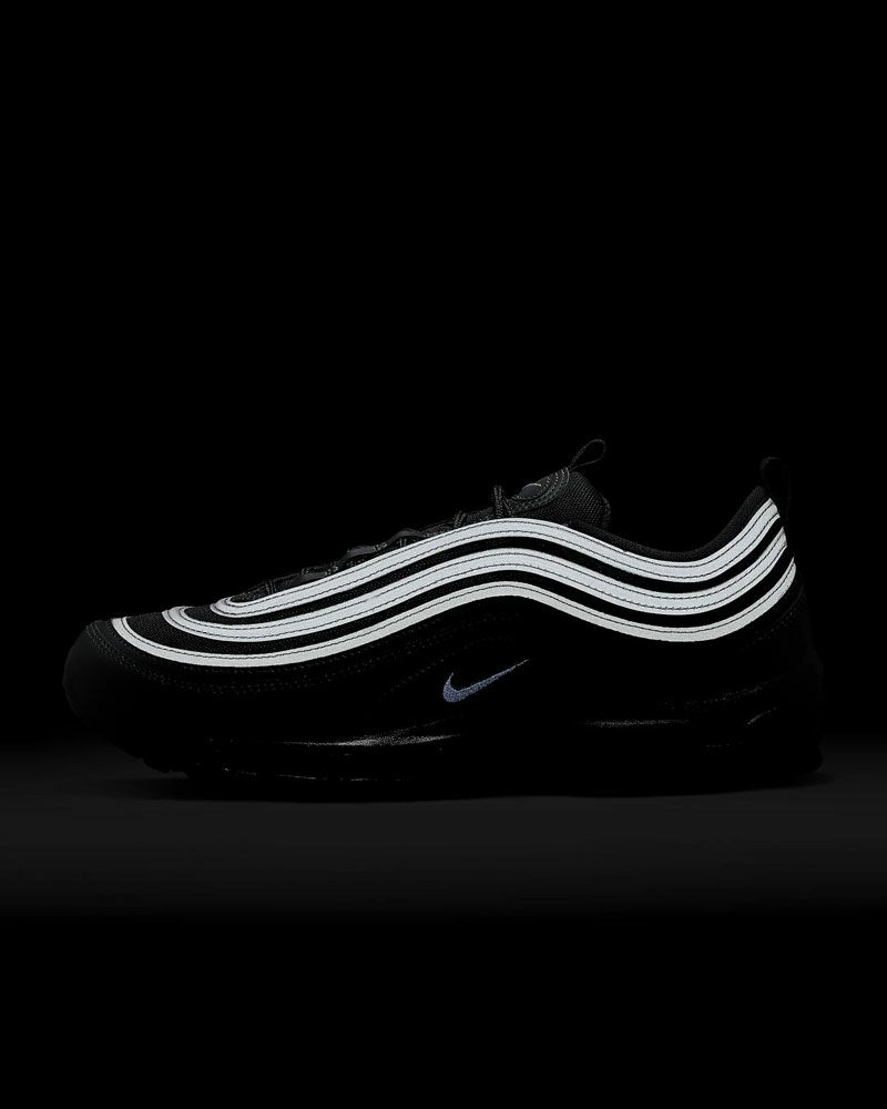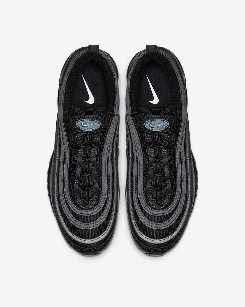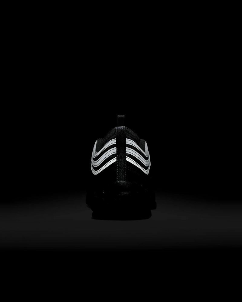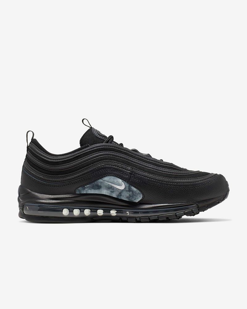 ナイキの'90sスニーカーを代表する一足、エアマックス97。新幹線からインスピレーションを受けたという近未来を想像させる流線的なデザインは、当時の人々に衝撃を与え、一大旋風を巻き起こしました。波のようなライン、リフレクティブ (再帰反射) 素材のパイピング、フルレングスのMax Airクッショニングなど、定評の高いデザインディテールを継承。 オールブラックのカラーパレットに、ダークグレーのアクセントを効かせたシックな一足です。