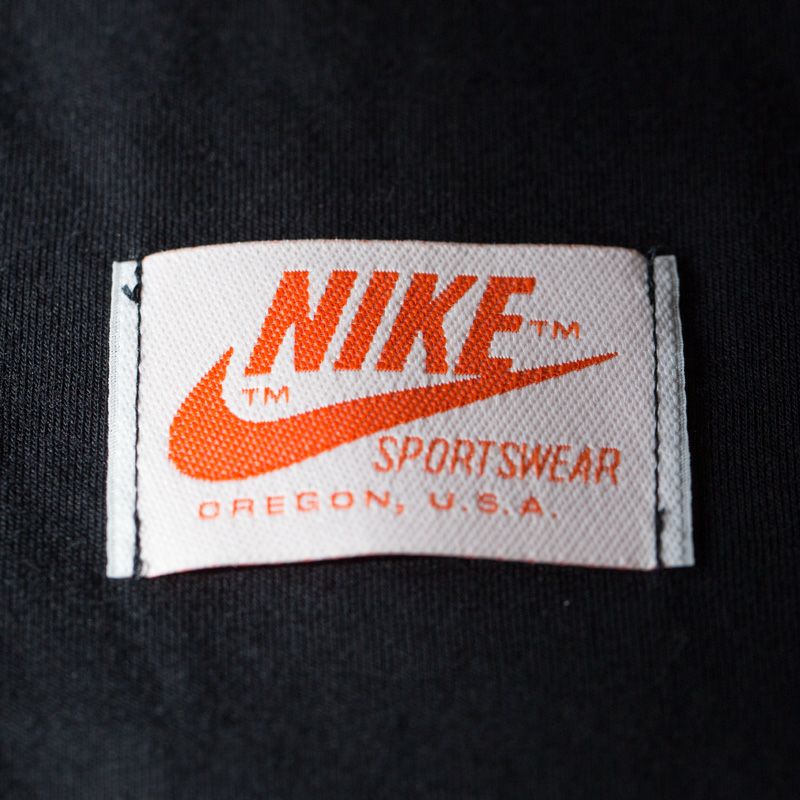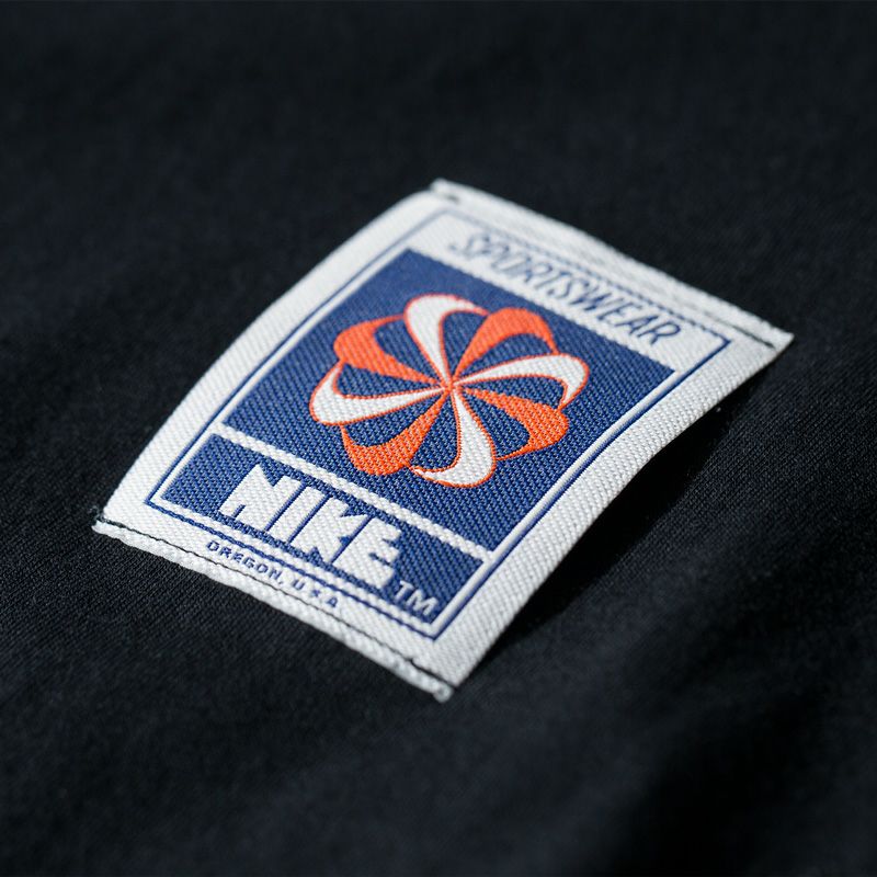 NIKE 歴代ウーブンパッチを縫い付けたグラフィカルTシャツ。