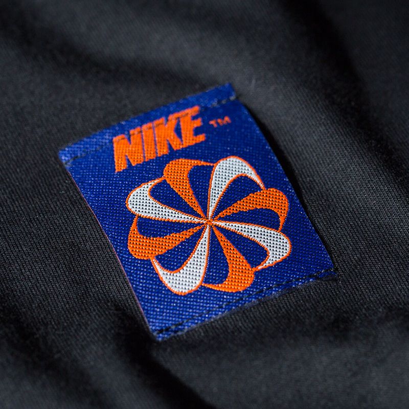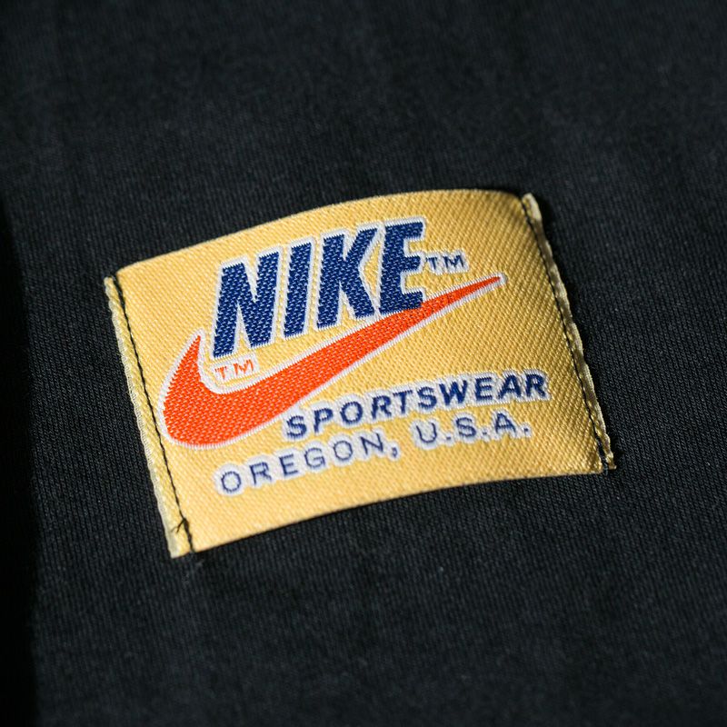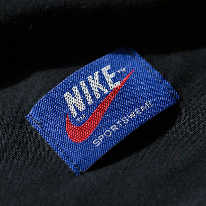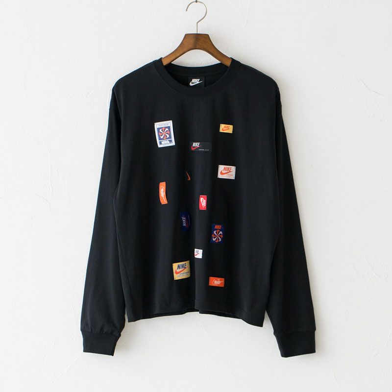 NIKE 歴代ウーブンパッチを縫い付けたグラフィカルTシャツ。