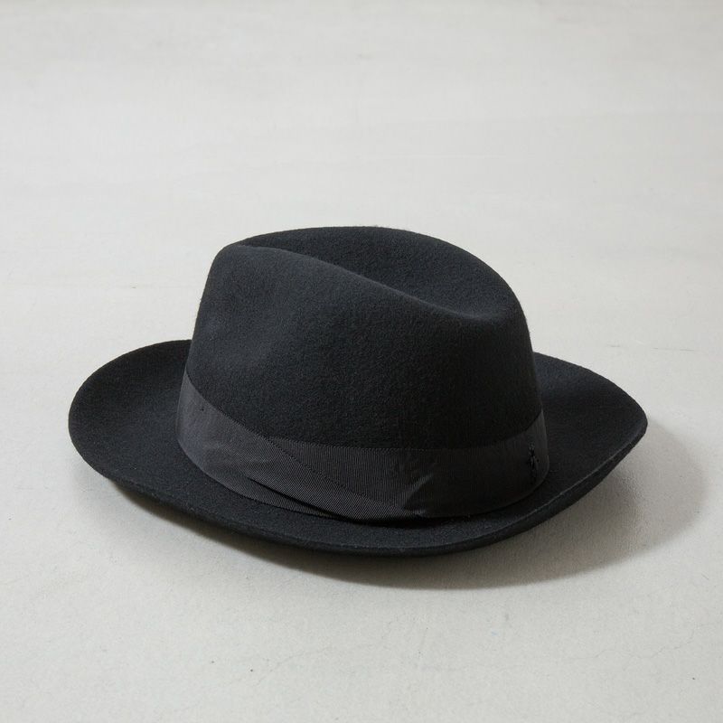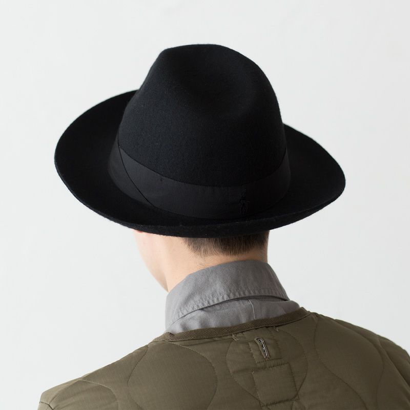 アメリカンプレッピーの代名詞「ポロ・ラルフローレン」の中折れハット。上質なウールの風合いと立体感のある美しいフォルムが魅力です。おなじみのポニー刺繍は背面のリボンにさりげなく。ボディと同じブラックのリボンでシックな印象に仕上げています。
