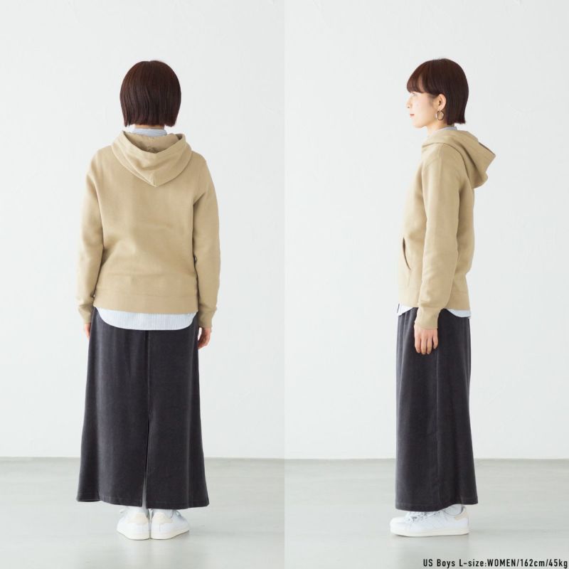 やや細身のスッキリとしたシルエットです。米国ボーイス規格のサイズ感は、日本人なら大人でも問題なく着ることが可能。女性や細身シルエットが好きな男性におすすめです。