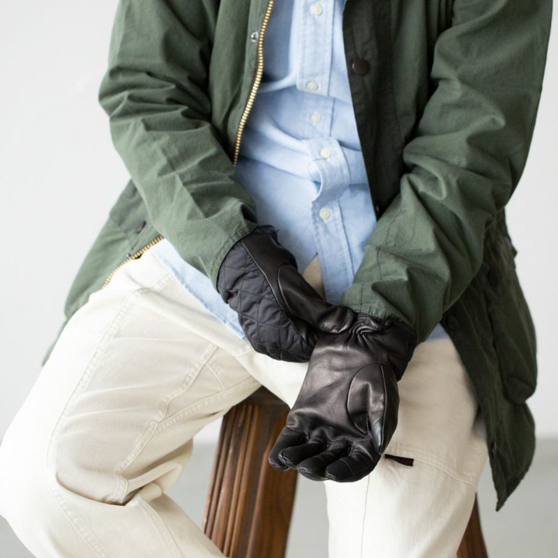 上品なダイヤキルトと柔らかで丈夫なナッパレザー(羊革)のコンビネーションが魅力の防寒用手袋。