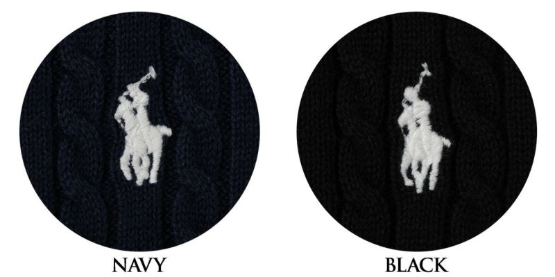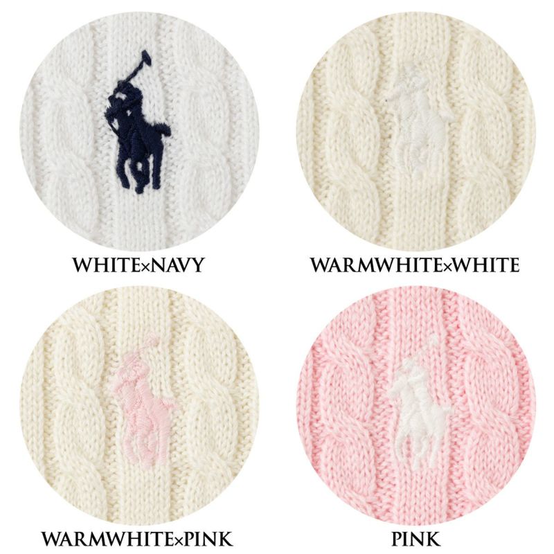繊細に編まれたミニケーブルニットにコントラストカラーのポニー刺繍が施されたシンプルな一枚。