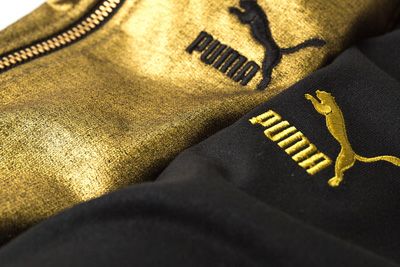 PUMAとのコラボレーションを示すクロスマークを、VASHTIEの"V"を使い表現しています。