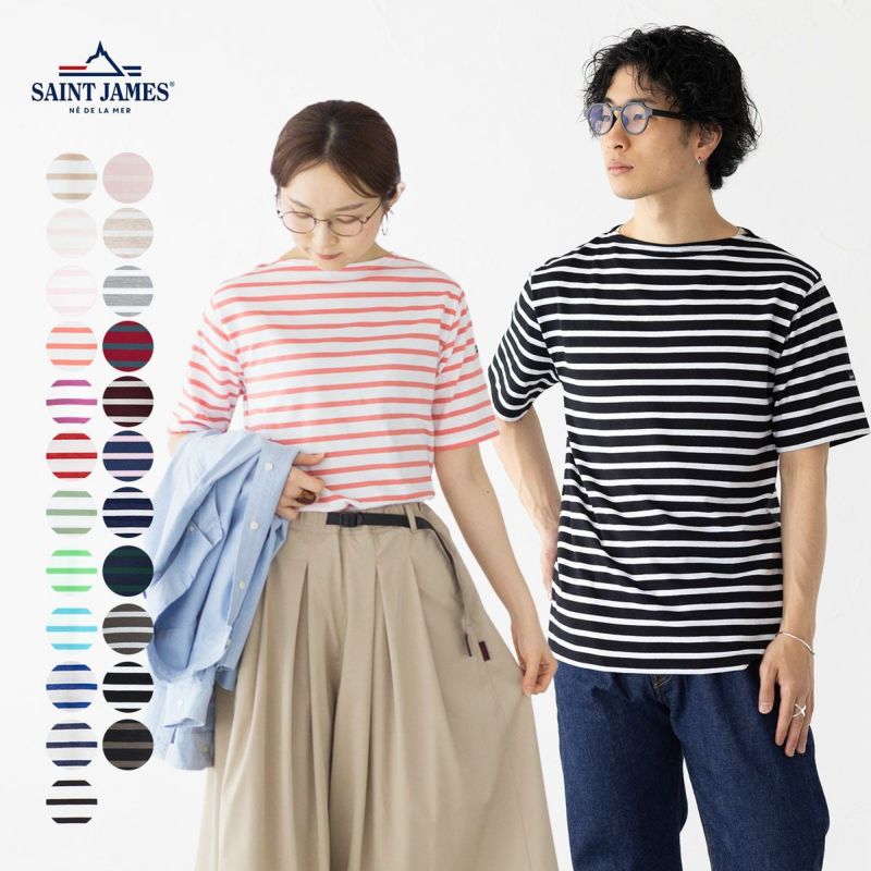 SAINT JAMES 夏の定番 五分袖の薄手バスクシャツ。