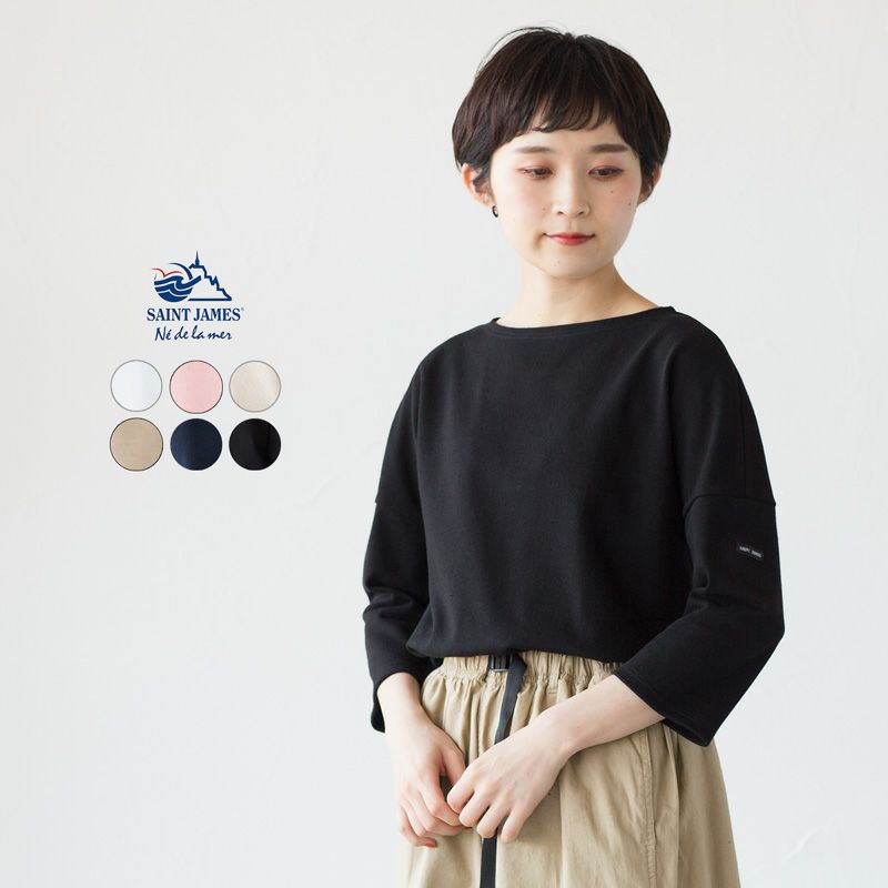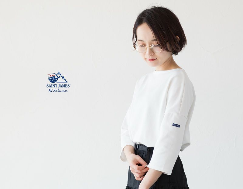 セントジェームスの大定番バスクシャツ、ウエッソンの生地を使用したドロップショルダーカットソー。