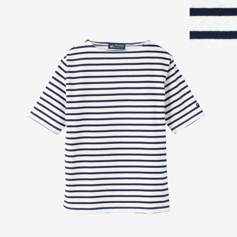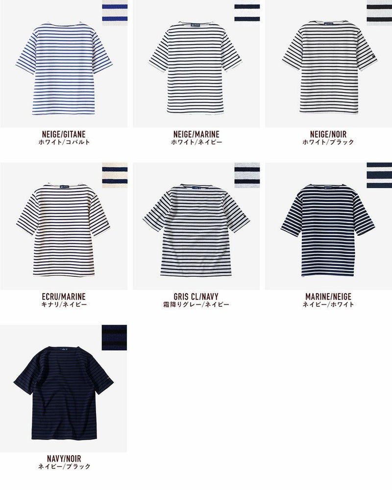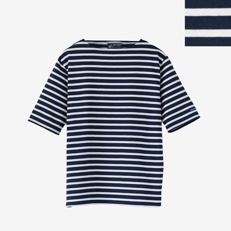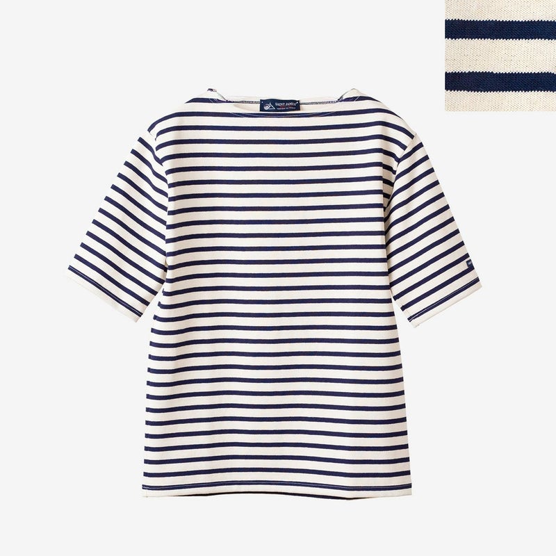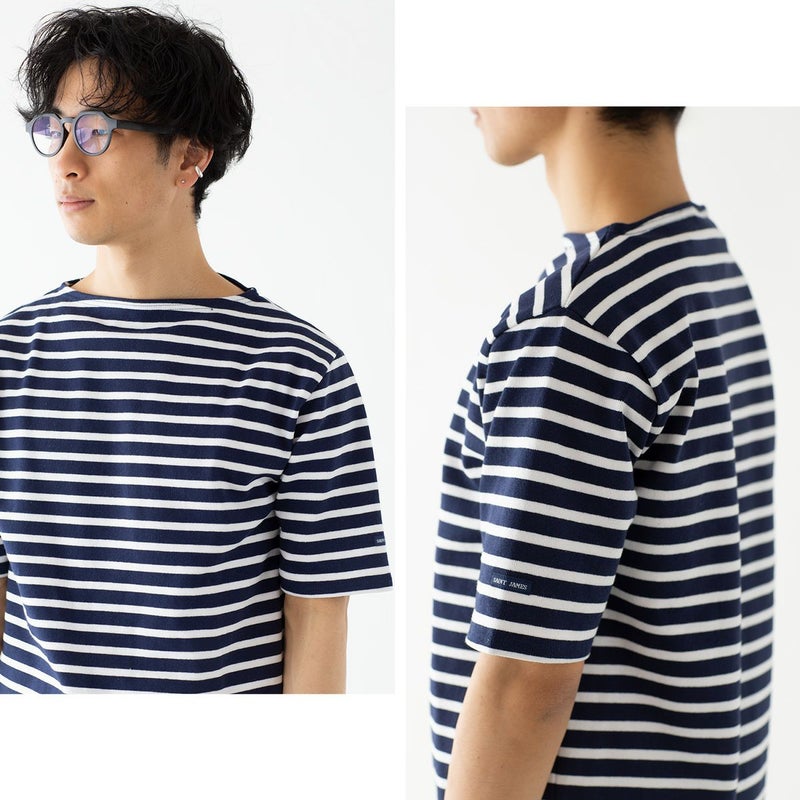 セントジェームスの定番、ウエッソンの五分袖モデル。ハリ感のあるバスクシャツ特有の肌ざわり、洗濯を重ねてもヘタることのないタフさ、着こむほどに体に馴染んでいく風合いがポイント。