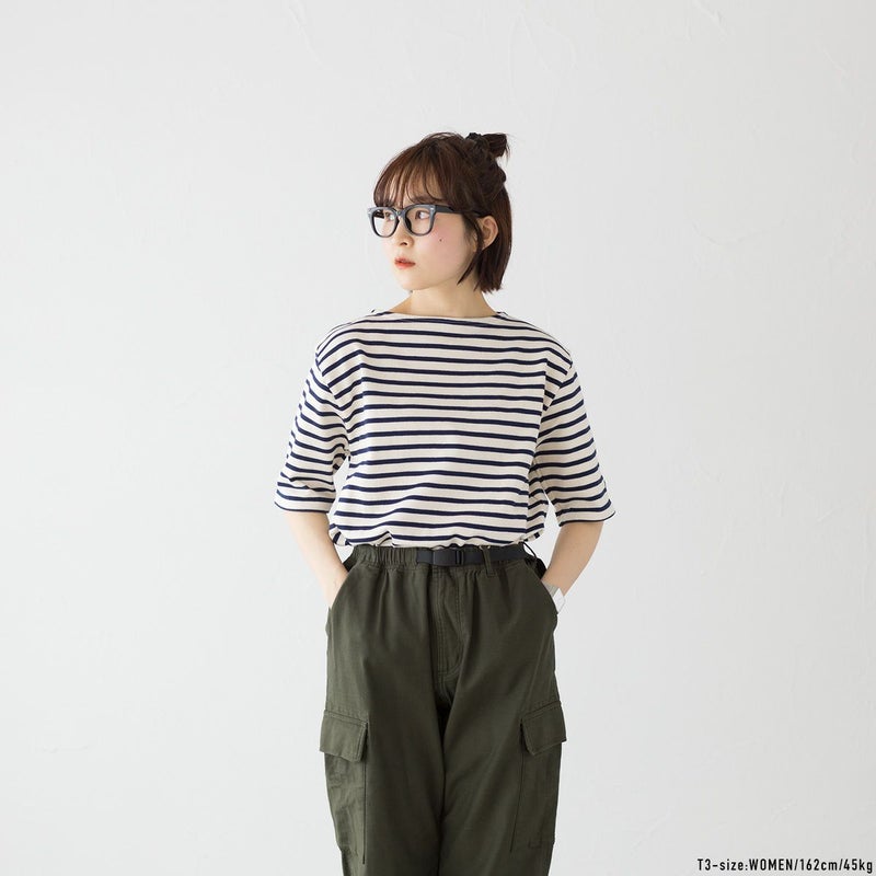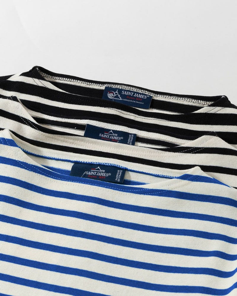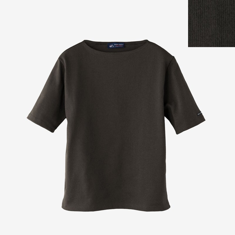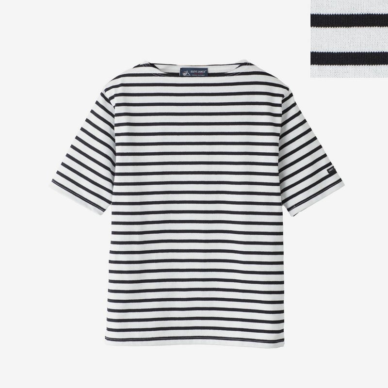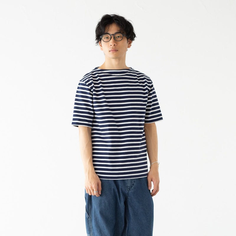 セントジェームスの定番、ウエッソンの五分袖モデル。ハリ感のあるバスクシャツ特有の肌ざわり、洗濯を重ねてもヘタることのないタフさ、着こむほどに体に馴染んでいく風合いがポイント。