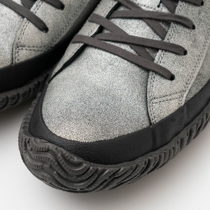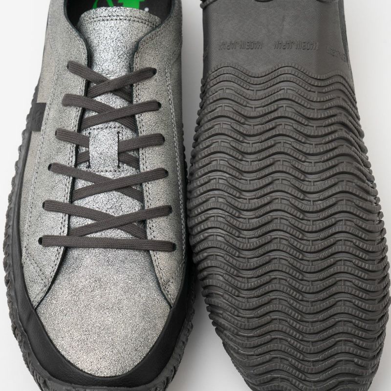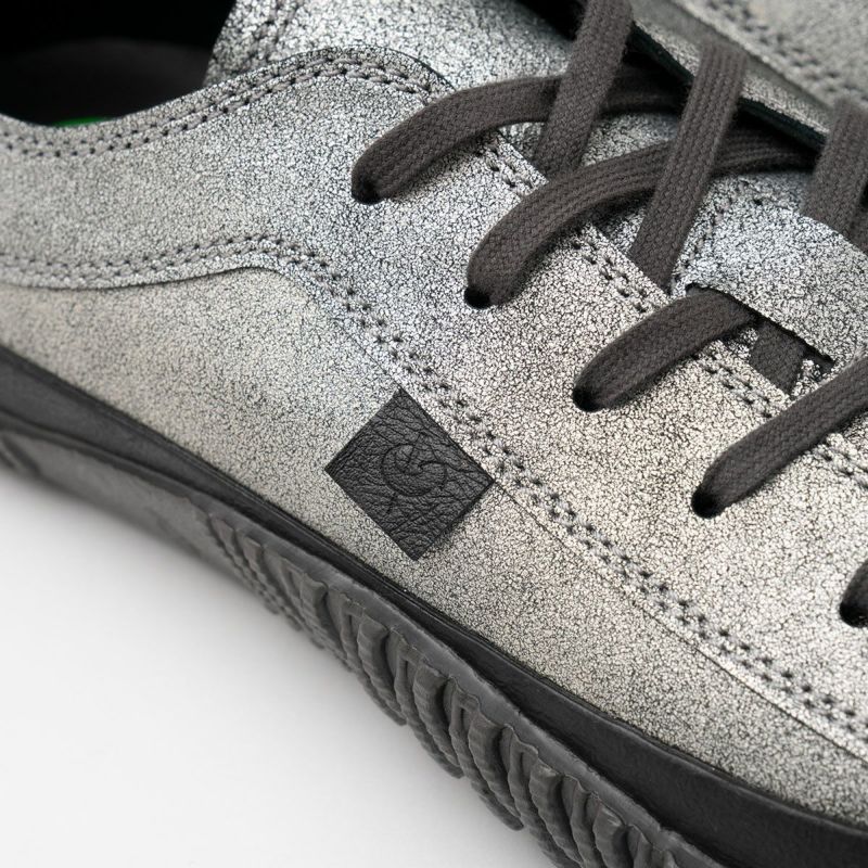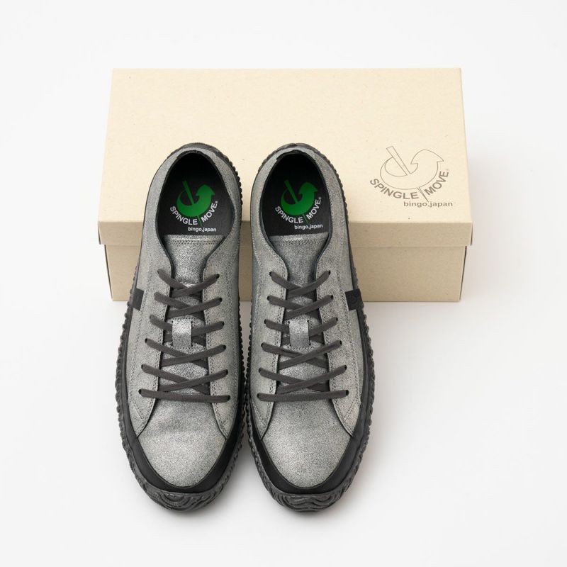 スピングルムーブを代表するヨーロピアンスタイルのローカットスニーカーSPM-110を、ヴィンテージ感のあるクラッキングレザーでアップグレード。こちらは光沢がさりげないマットなガンメタルカラーを纏った一足です。