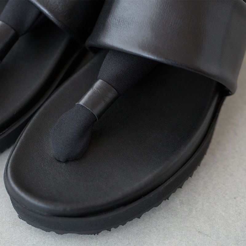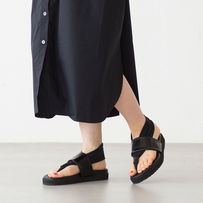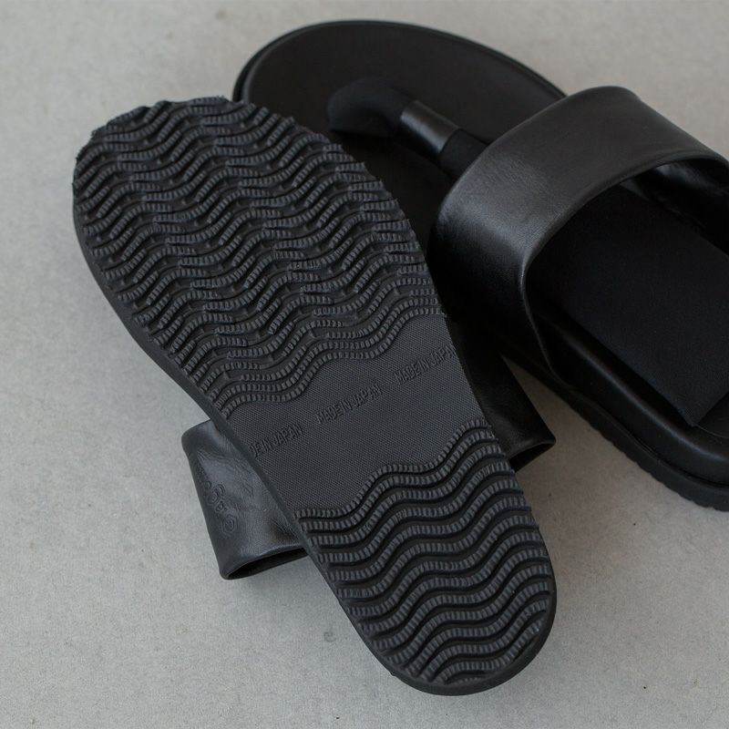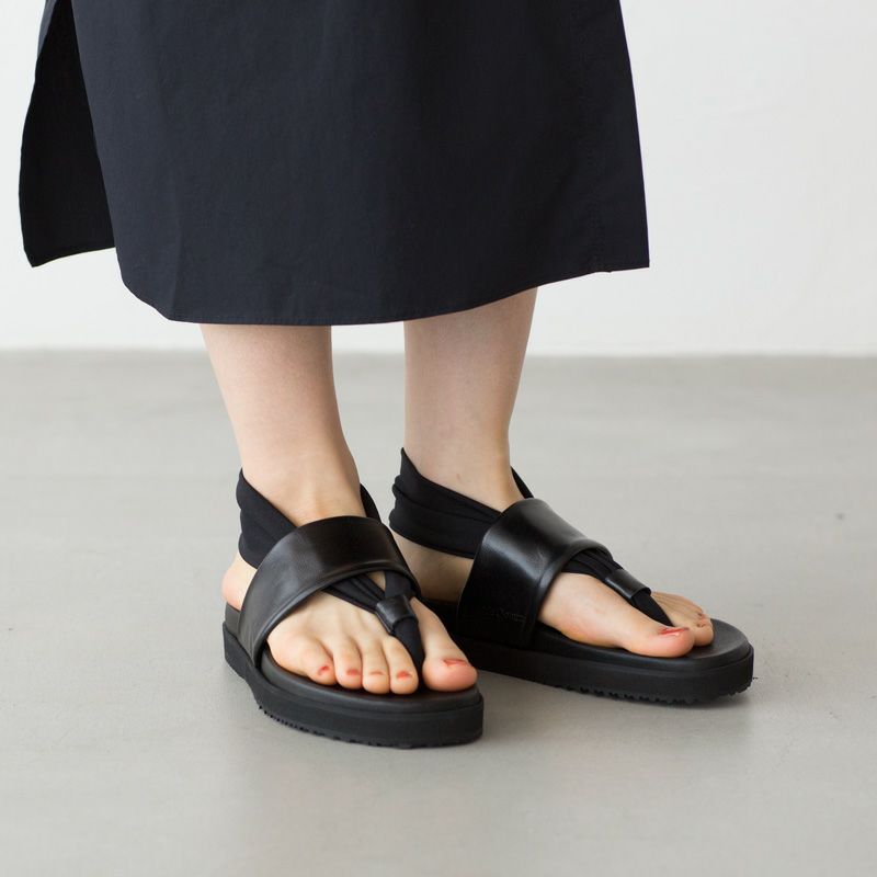 神戸の老舗シューズメーカー「la gomma」と共同開発した、スピングルムーブのトングサンダル。ストレッチ素材のバックストラップとソフトなフットベッドでストレスフリーな履き心地です。スピングルムーブらしい上質な艶のあるカウレザー、弾性・耐久性・グリップ力・屈曲性に優れたを天然ゴムのNo.8アウトソールを使い、高級感のある上質な大人のサンダルに仕上げています。アッパーの内側に「la gomma」の型押しロゴ入り。