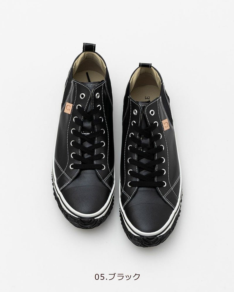 他のモデルよりも足高を高めに、足幅を細めにデザインしたモダンでシャープなフォルムで、薄く仕上げたソールの巻上げがオトナっぽいルックスに仕上げています。