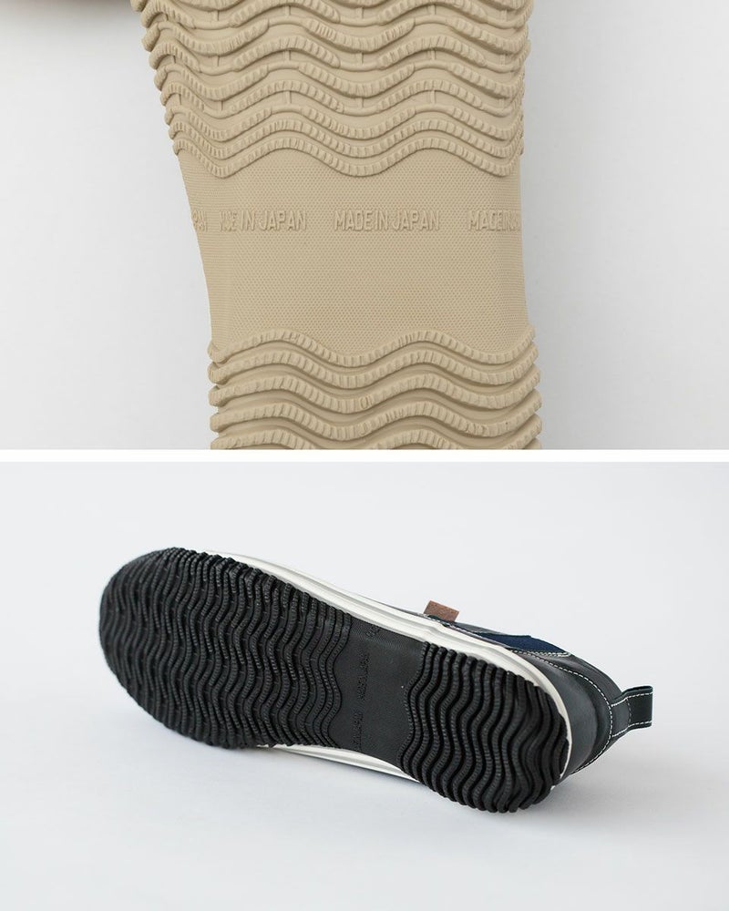 | 90年以上の歴史と伝統を誇る広島県府中市の工場が生み出すハンドメイドスニーカー。職人の知識と技術を活かし多くの工程を手仕事で仕上げた純国産のものづくり。バルカナイズド製法などで生み出される細部までこだわり抜いた履き心地、遠目でもわかる巻き上げソールのデザインが特徴です。