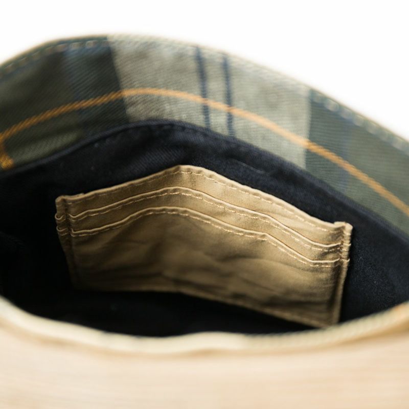 フラップにブランドネーム刺繍、裏にはジャケット襟に使われるコーデュロイが配されています。他にもジャケット裏地のチェックを再現した内部デザインやお馴染みのジッパーなど、バブアーファンなら嬉しくなってしまう粋な仕掛けが満載です。