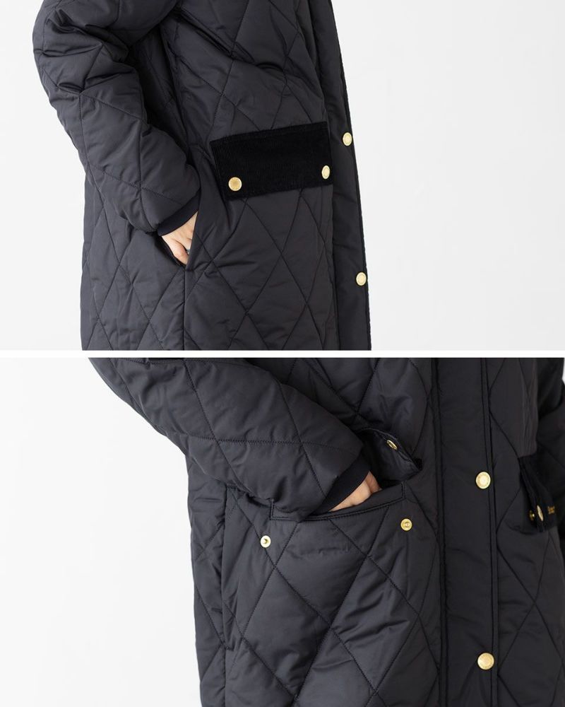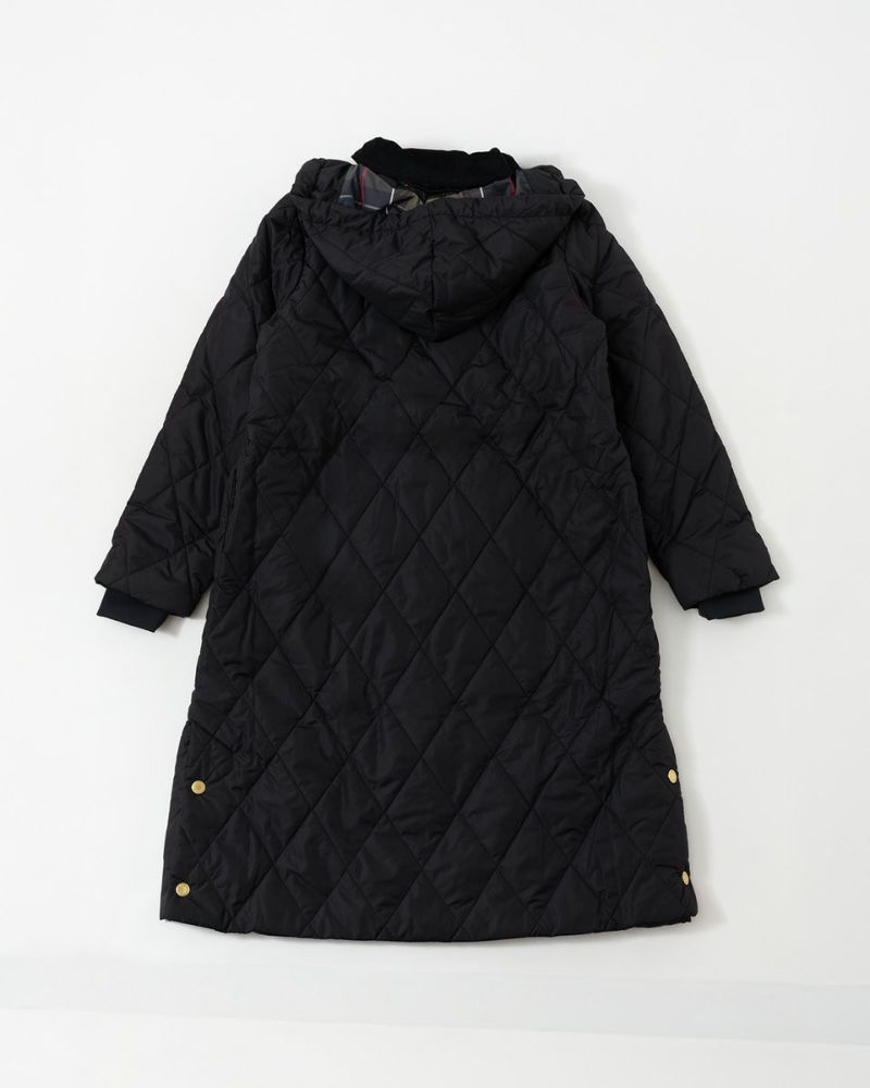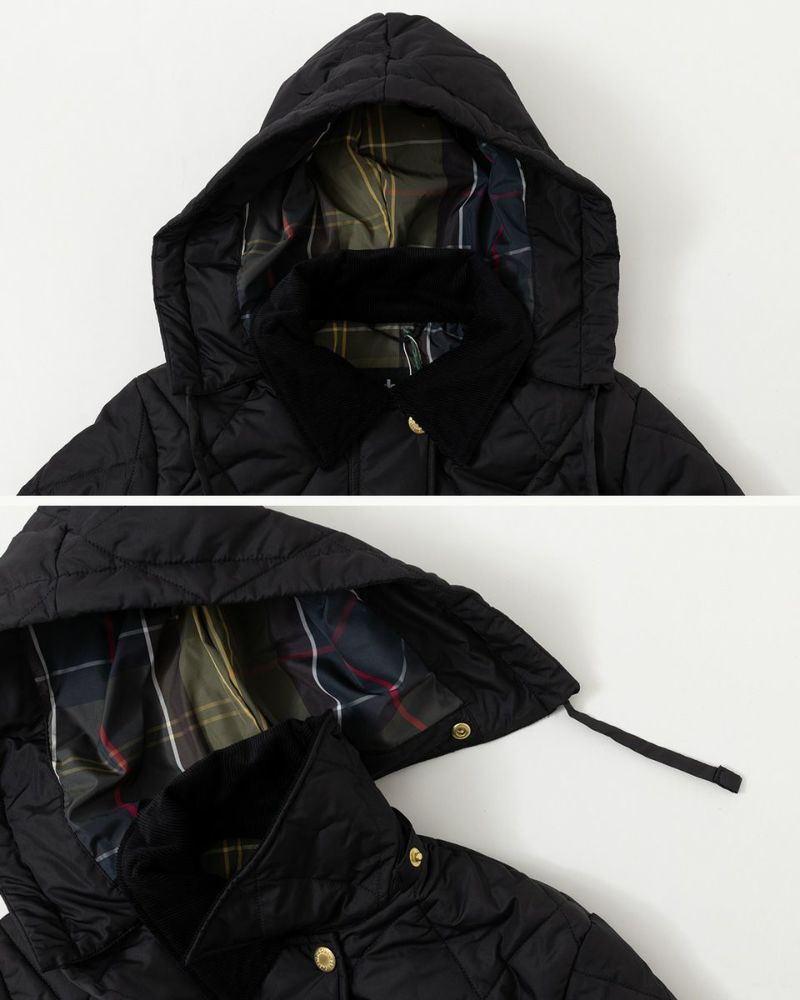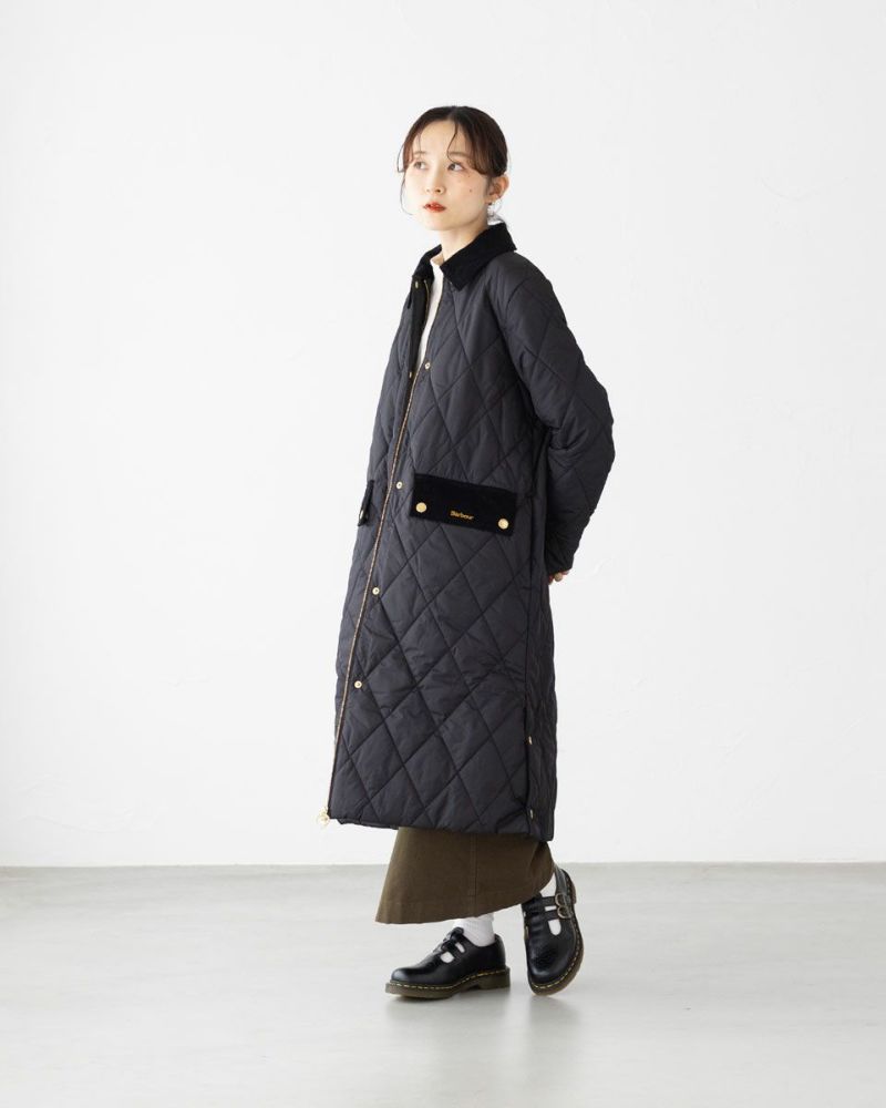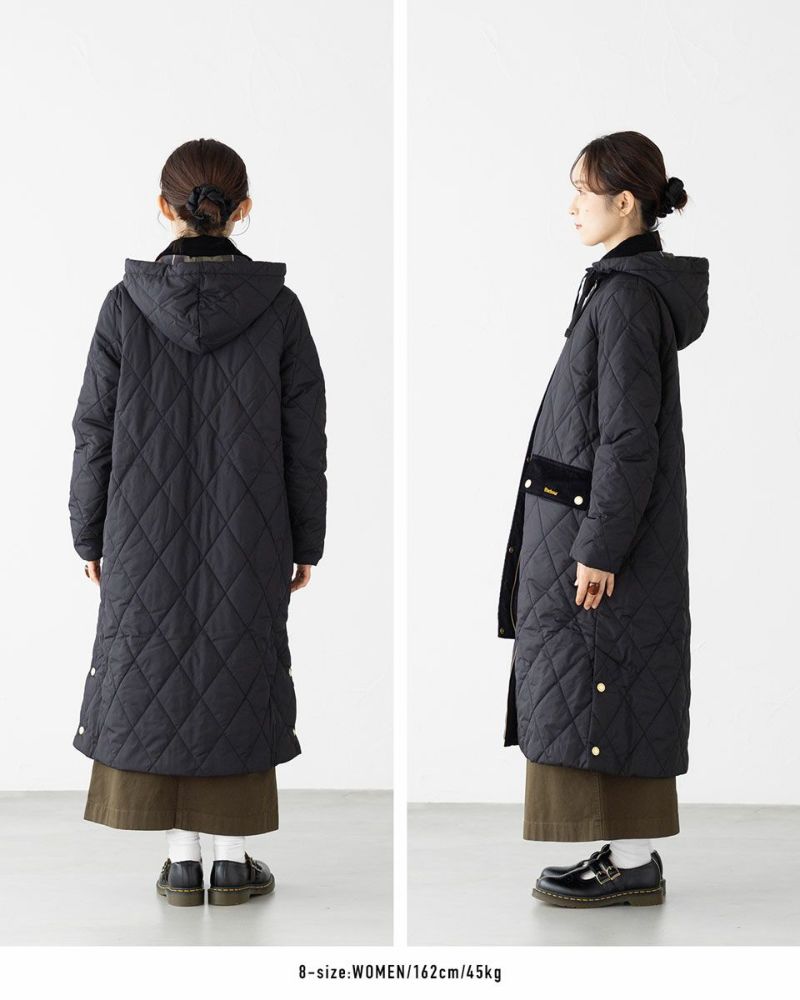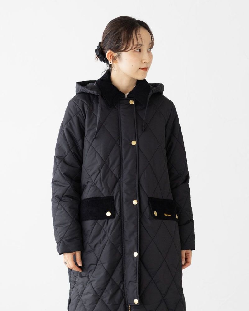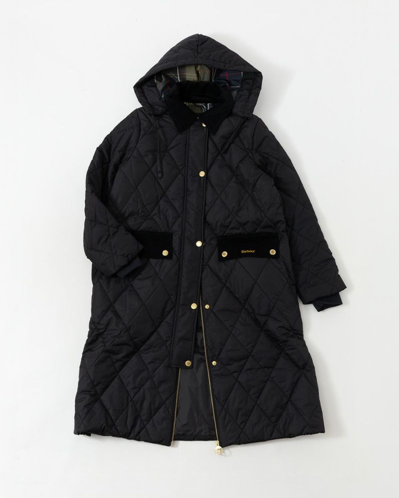 バブアー人気の冬のキルティングシリーズから、フード付きのロング丈の新作が登場しました。ロング丈ジャケット「バーレイ」をデザインソースとしています。