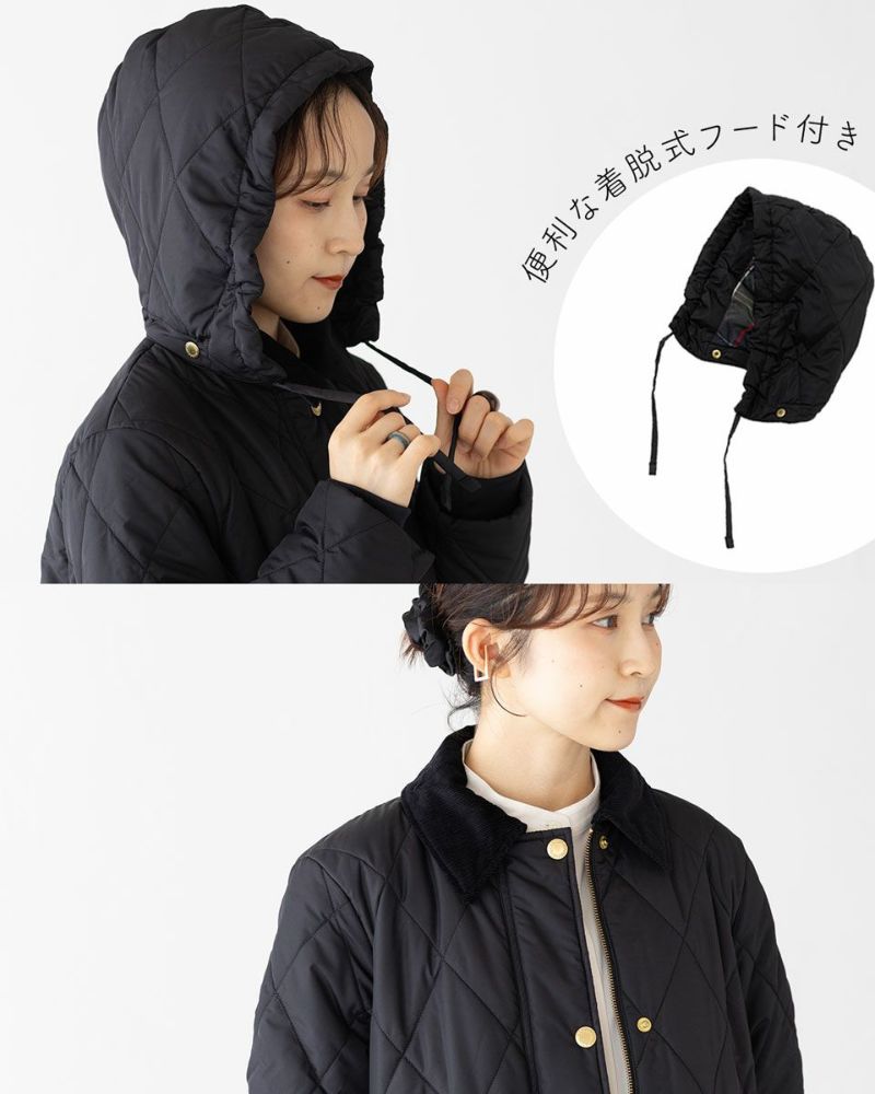 フードは着脱可能で、外してバブアーお馴染みのコーデュロイ襟仕様で着こなすのも◎。防寒を重視しつつバブアーらしさを兼ね備えています。