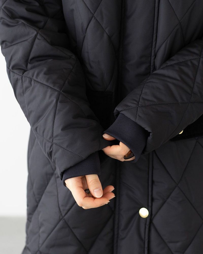 大人な雰囲気たっぷりのダイヤモンド中綿キルト生地。デニムなどと合わせてもカジュアルになりすぎないのがポイント。非常に軽くなめらかな袖通りで、ストレスフリーな着心地です。