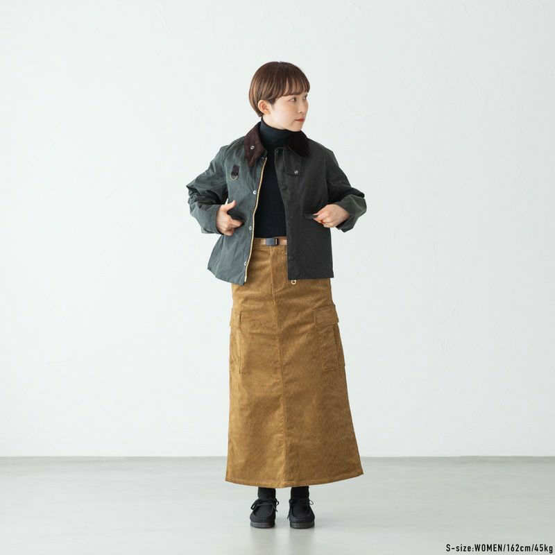 バブアーを印象付けるコーデュロイのステンカラー。コットン製で肌触りが良く素肌が触れてもノンストレス。裏面に備えたスロートフラップは襟を立ててボタンを留めることで雨風を凌いでくれます。襟後ろには別売りのフードを取り付けるスナップボタン付き。