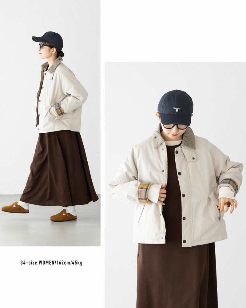 バブアーのジャケットの中でも広く愛されているモデルだけに使いやすさは抜群。すっきりとして大人っぽいルックスは、サッと羽織るだけでコーデを格上げしてくれます。