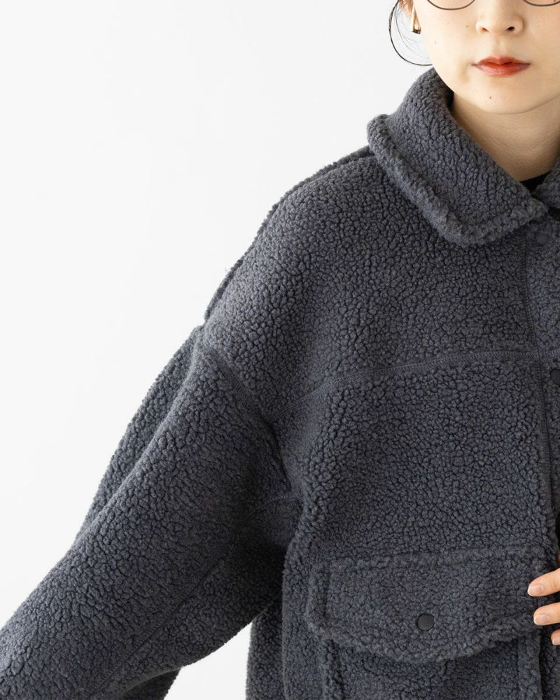 ふんわりと柔らかい、ボアフリースを使用。軽量ながら頼もしい暖かさで、コートの中着としても活躍してくれそうです。