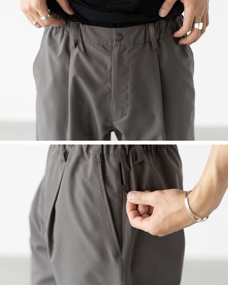 抜群の通気性を誇るリップストップ調のクールドッツを使用した、夏に活躍する超軽量イージーパンツ。