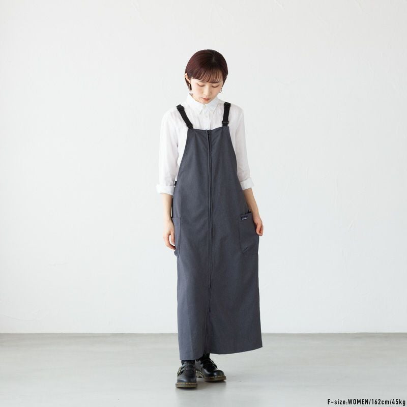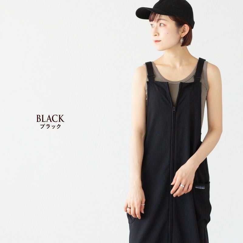 ドライなシャリ感。フロントジップの高機能ジャンパースカート。