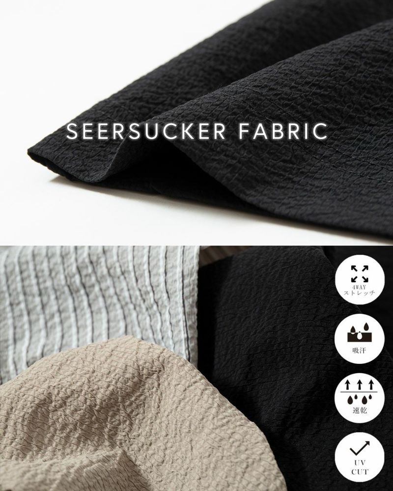 軽くてドライタッチ、肌にまとわりつかない着心地が夏にピッタリのシアサッカー生地。