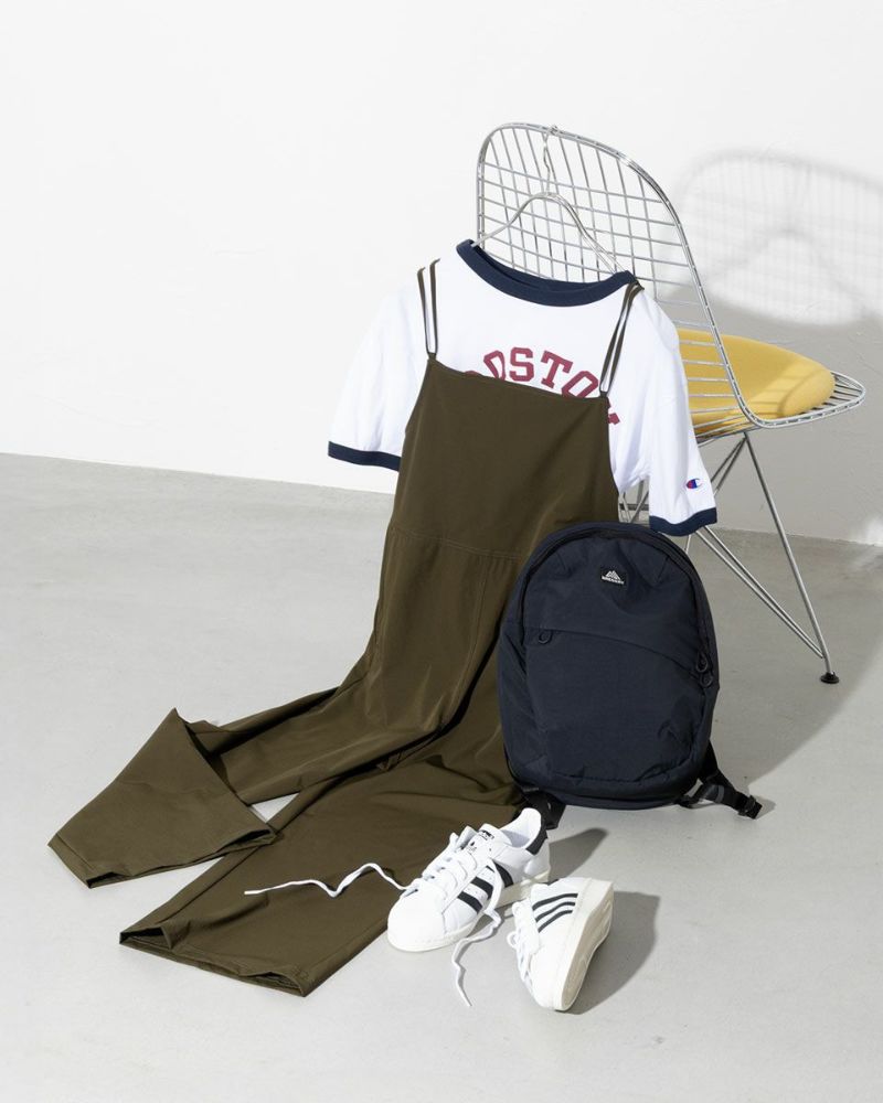 クロスストラップデザインのナイロンサロペット。