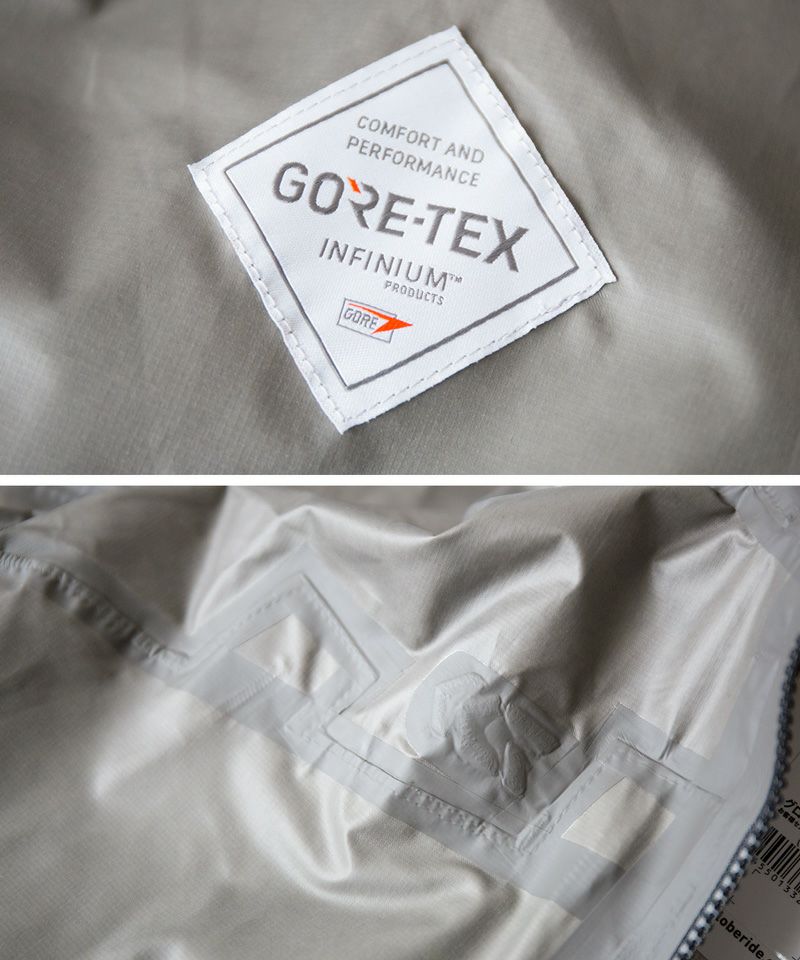 防水性よりもドライな環境でのパフォーマンス性を重視したGORE-TEX INFINIUM生地を全面に採用。小雨なら凌ぐことも可能な撥水性、汗を素早く外へ逃がす透湿性、風や寒さなどに対して快適性と防護性を提供する汎用性の高い2.5レイヤー素材です。