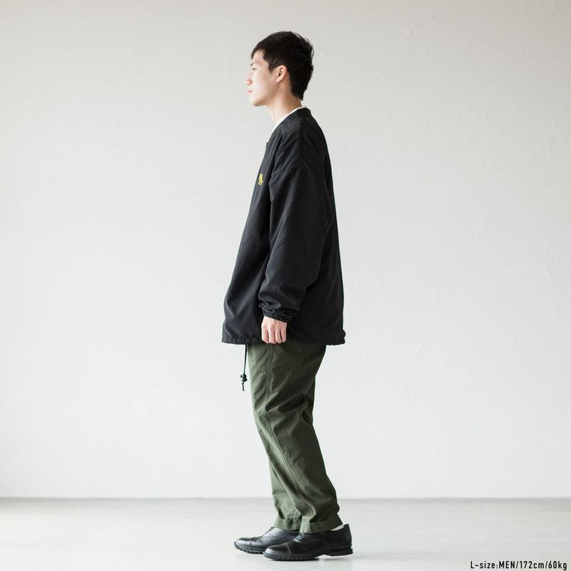 '50年代に創業したトリプルクラウンのウェアは、現在でもイギリス本国の工場で製造。ラガーシャツを中心に丈夫で高品質なプロダクトを製造してきました。こちらは肌寒い時にサッと羽織れるウインドブレーカー。マットで落ち感のある生地を使い、ゆったりとしたシルエットを採用することで、ラフな雰囲気のストリートウェアとしても活躍するルックスに仕上げています。
