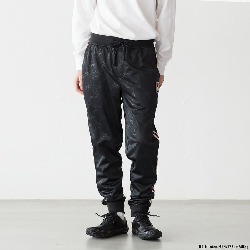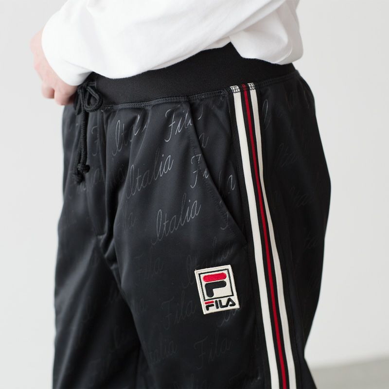 アメリカで流通しているFILAヘリテージラインのトラックジャケット&パンツ。90年代のスポーツストリートスタイルを彷彿させる2パネル切り替え、FILAらしいストライプテープ、ブラック同色のモノグラムプリントが目を引くデザインです。