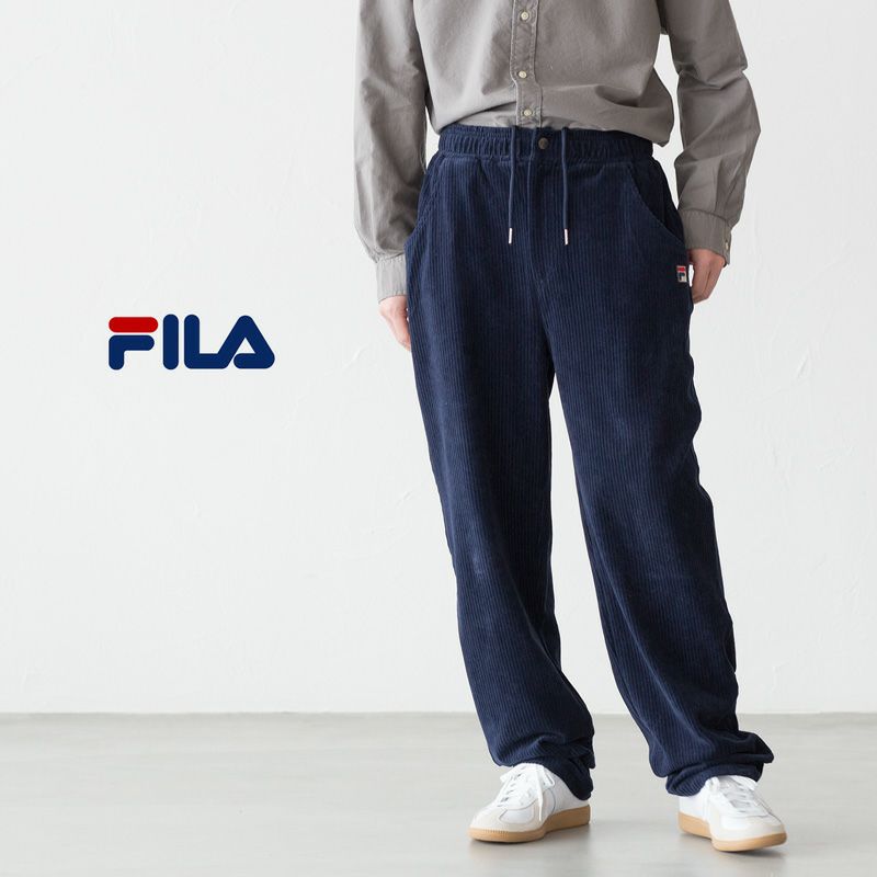 アメリカで流通しているFILAヘリテージラインのベロアパンツ。太畝のコーデュロイに見えるクラシカルな風合いの生地を採用し、トラウザースのような快適性と上品な印象を備えたアイテムに仕上げています。
