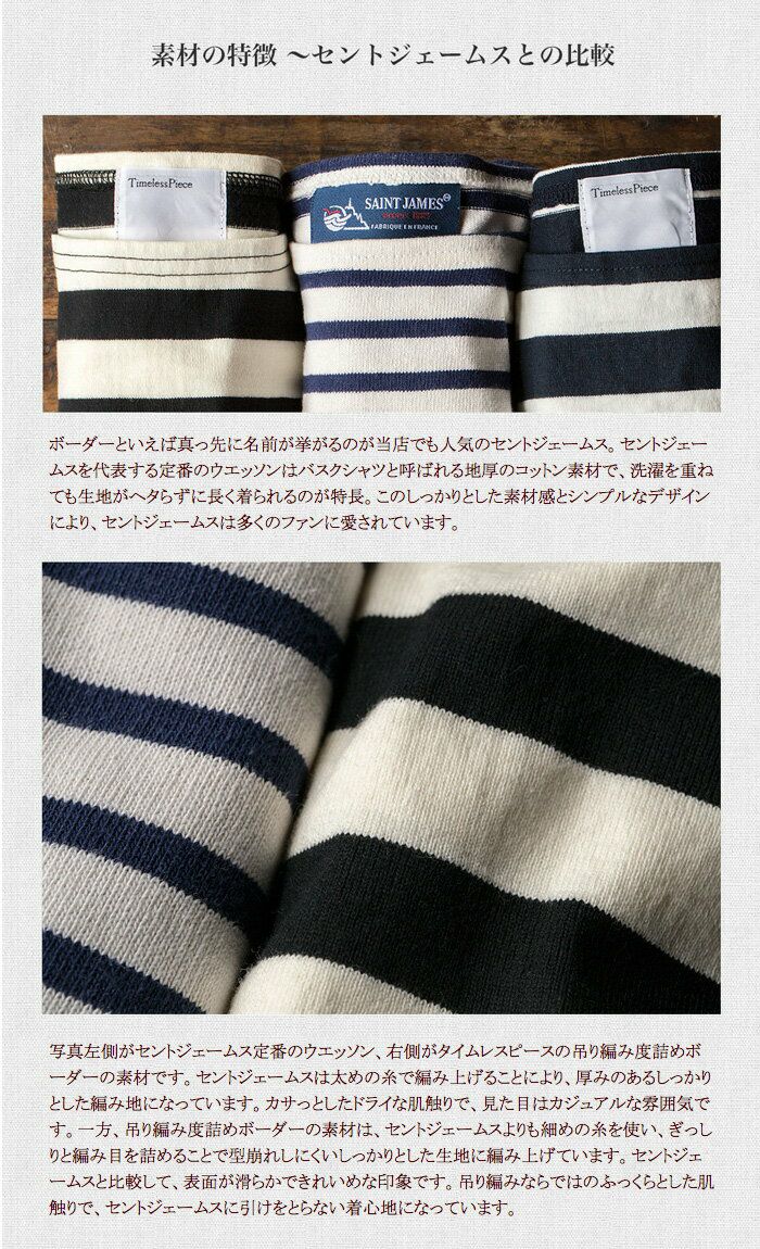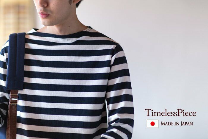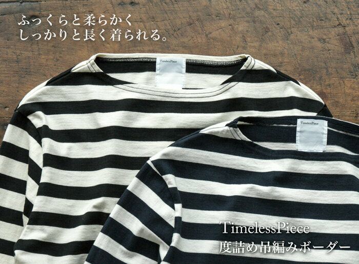 度詰め 吊り編み ボーダー Tシャツ タイムレスピース 日本製 メンズ ボートネック カットソー
