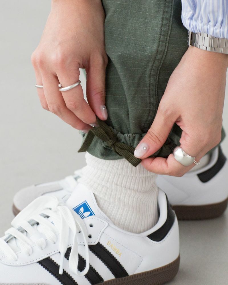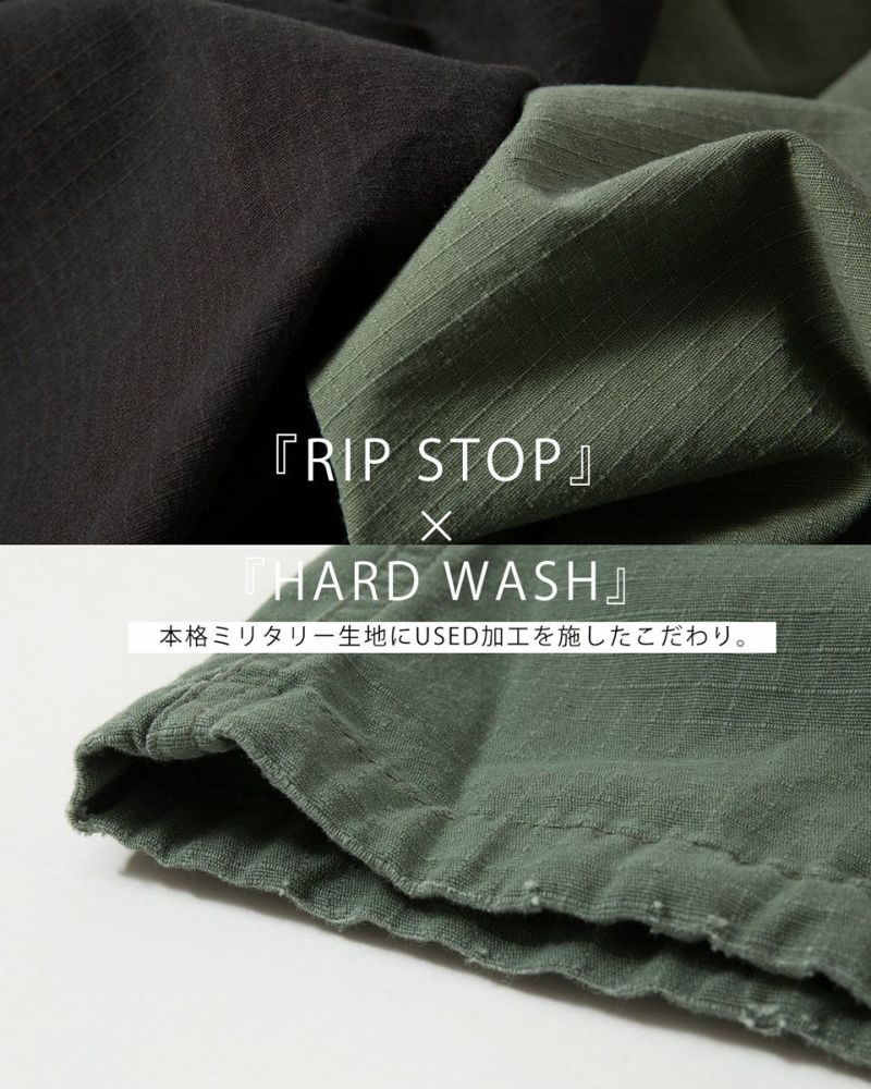 こちらはリップストップ生地にハードウォッシュ加工を施しており、柔らかく軽い仕上がりに。街着として気軽に取り入れやすく女性にもおすすめの一本です。